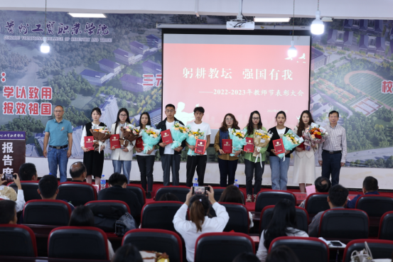 大会在庄严的国歌声中拉开序幕,围绕主题“躬耕教坛,强国有我”,对2022—2023学年度在学校教学科研工作、学生管理工作、教辅工作、后勤工作等方面涌现出来的54名先进个人进行了表彰,颁发荣誉证书及鲜花。