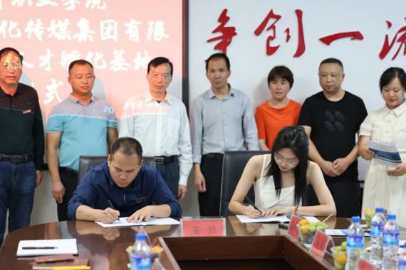 揭牌仪式上,校领导祁飞先后与天歌映像影视文化传媒公司总经理李国艳、贵州新新文化传媒集团有限公司项目负责人徐悦签订战略合作协议。