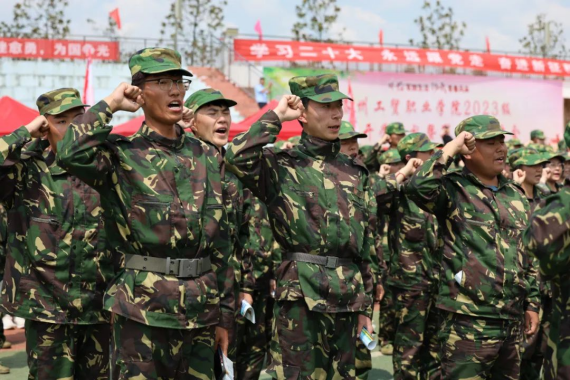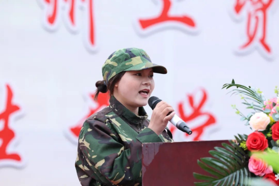 2023级学生代表罗建辉发言军训初期,我最开始所体验的军训生活是无聊乏味的,每天重复的早操生涯,让本就犯困的我多少有点抵触。经过教官和老师的开导,我突然发现,军训生活其实是五彩斑斓的。“向右转”“向左转”“齐步走”“正步走”……随着一声声口号在耳边响起,我不再厌烦早晨六点二十的起床闹铃,不再害怕晨跑。