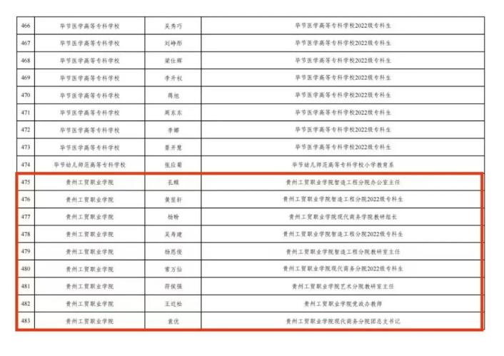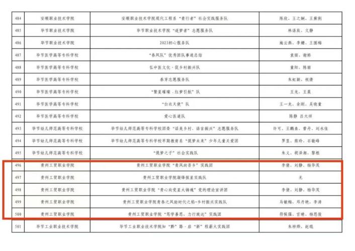 在校团委的组织下,在各二级学院、相关单位的大力支持下,我校在2023年贵州省大中专学生志愿者暑期文化科技卫生“三下乡”社会实践活动共组织20支队伍,涵盖全校师生300 余人。荣获优秀组织单位奖2项,优秀个人奖9项,优秀团队奖5项。