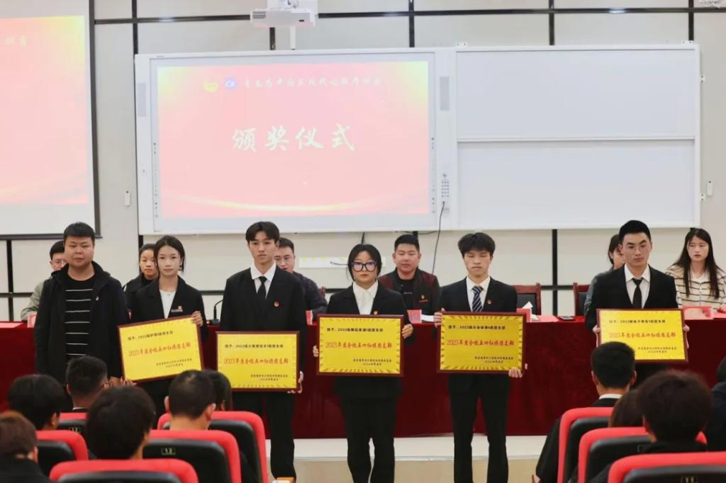 江燕虎为评为“五四红旗团支部”班级颁奖