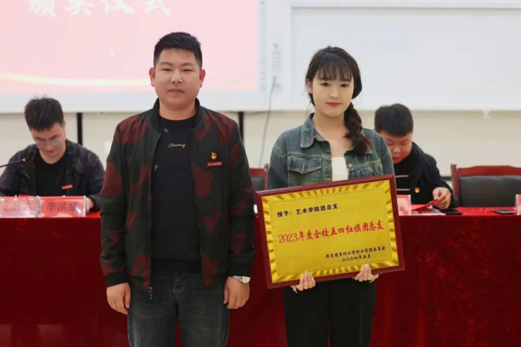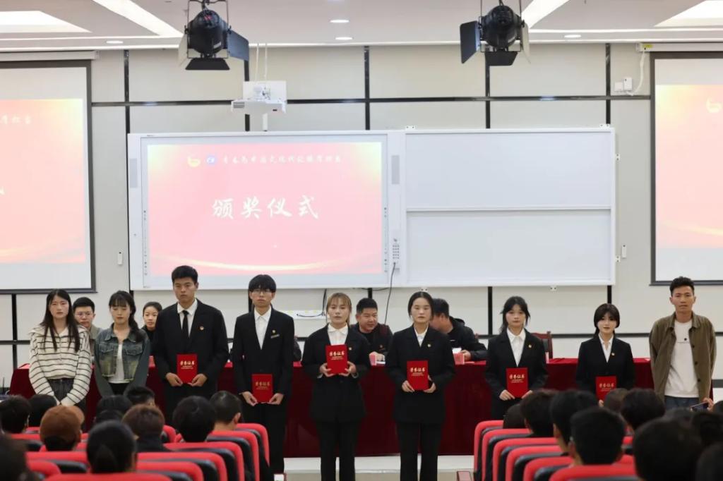 校领导、校团委老师及各二级学院团总支书记为获奖集体和个人代表颁发牌匾、荣誉证书。