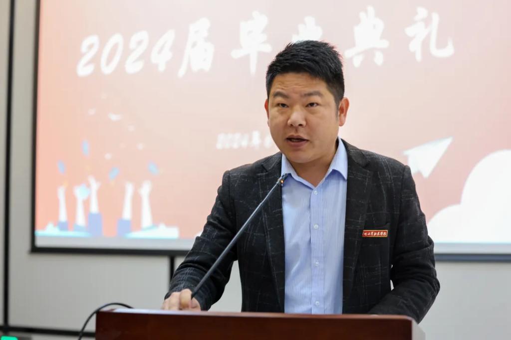 来自智造工程学院的教师罗昌稳作为毕业班教师代表发言,他表示,希望全体毕业生坚持梦想,勇往直前:学会感恩,回报社会:持续学习,永不止步,学习是终生的事业。在未来的日子里,希望全体能够保持对知识的渴望和追求,不断学习新知识、掌握新技能。