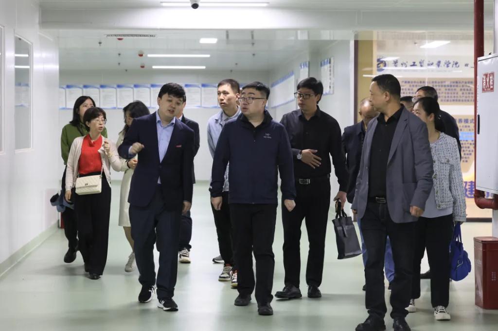 葛昆一行在校领导陪同下深入汽车工程实训基地、金字塔体育实训基地、工业机器人实训基地、空乘高铁实训基地、辰海大剧院、护理实训基地、高原预征班训练基地、一品鲜产教融合中心等地进行实地调研。
