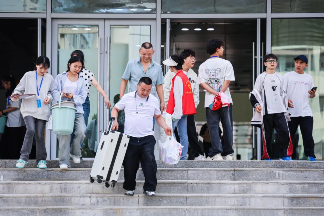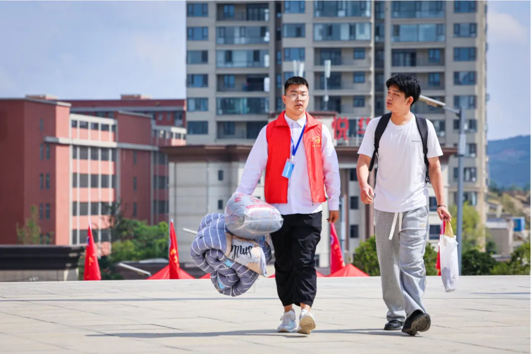 在校园内,各职能部门的工作人员各司其职,为新生办理入学手续提供便捷服务。保卫处加大校园巡逻力度,维护校园秩序和安全;宿舍管理人员则高效地为新生办理入住手续,确保他们能够及时入住;而学生志愿者们则穿梭在人群中,为新生提供热情的引导、搬运行李等帮助。他们的身影成为校园里一道亮丽的风景线,让新生感受到了家的温暖和学校的关怀。