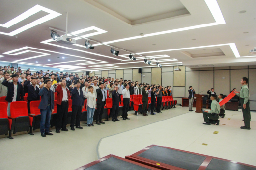 勒系琳带领全体教职工庄严宣誓:“我志愿成为一名人民教师,忠诚党的教育事业遵守教育法律法规,履行教书育人职责,引领学生健康成长,做到有理想信念……”铮铮誓言铭初心,履职践诺担使命,全体教师紧握高举的右拳,一句句铿锵有力的誓言振奋人心、催人奋进,是每一位教师的自我期许,更是对教育事业的庄严承诺。