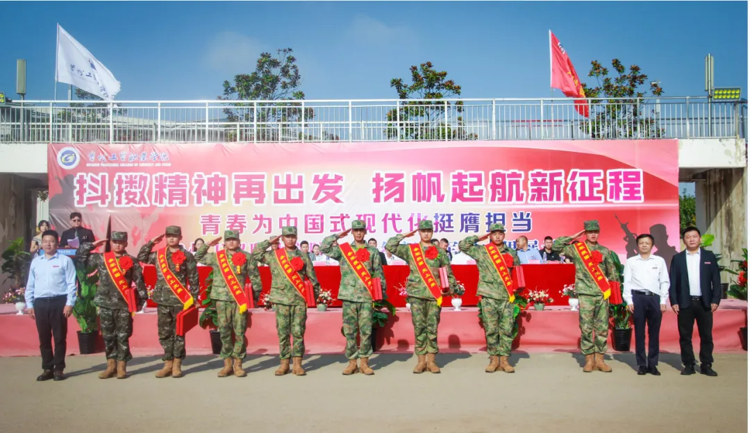 聂立新郑重宣布:beat365官方网站2024级新生军训工作圆满结束!愿2024级工贸学子们,带着高原炽阳下锤炼的意志和汗水铸就的坚韧品格扬起风帆,蓄势启程乘风破浪,走向荣光!