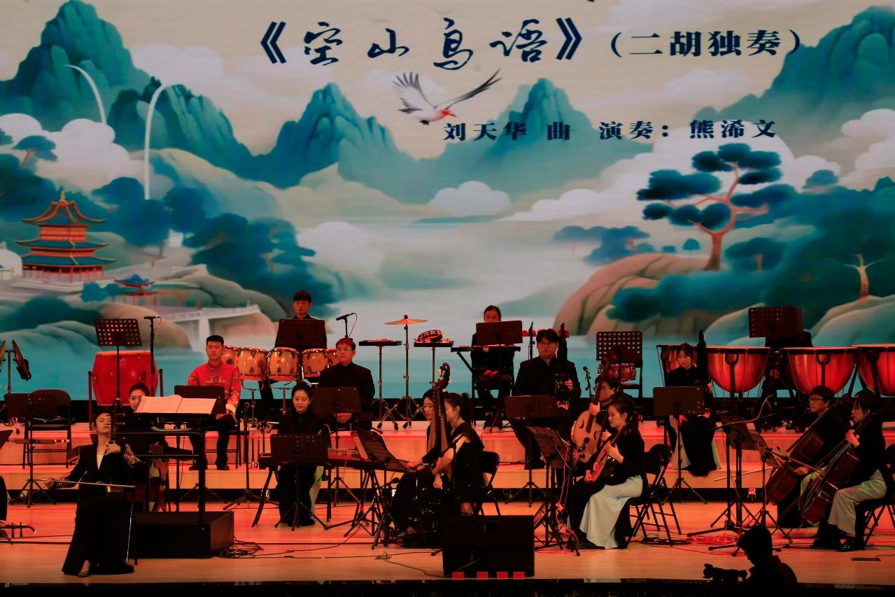 《挂红灯》(竹笛独奏)、《空山鸟语》(二胡独奏)让现场听众既领略了陕北风情,又仿佛能够清晰地听见灵动的音符宛如鸟儿清脆的啁啾声。《五哥放羊·三十里铺》让现场听众在悠扬的音乐旋律中,尽情领略当地独特的风土人情,欣赏由李复斌和刘文金两位老师编曲的《五哥放羊·三十里铺》。