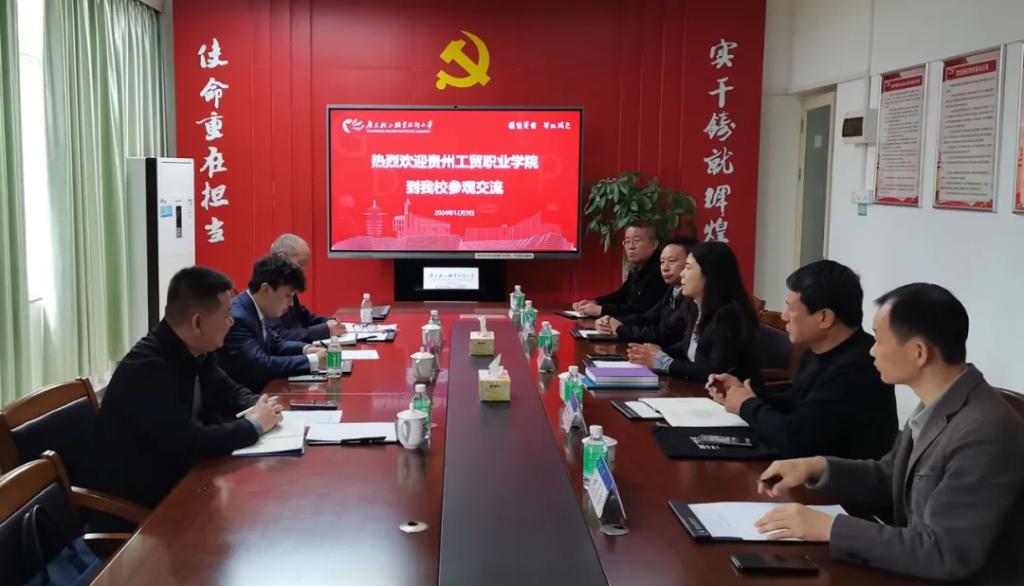 12月9日,beat365官方网站理事长黄冠迪率校党委委员、副校长李新发、宋新乐一行3人到广东轻工职业技术大学对接帮扶事宜。广东轻工职业技术大学党委副书记梁艳珍在新港校区办公楼二楼会议室举行接待。
