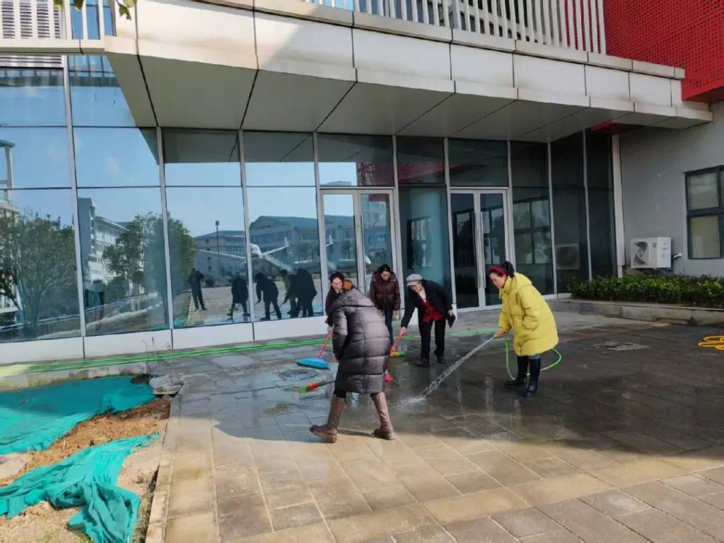开学前,后勤处组织工作人员对教学楼的走廊、楼梯等地方杂物间清理得干干净净,并对进行全面消毒,让校园环境焕然一新。