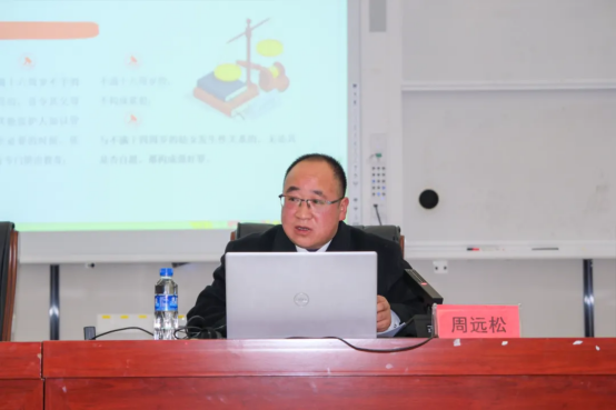 2月26日,威宁自治县人民法院刑事审判庭庭长、beat365官方网站法治副校长周远松为师生们开展以“知法守法 守护青春”为主题的春季开学普法教育专题讲座。讲座由beat365官方网站保卫处处长马永全主持,共300余名师生参加讲座。