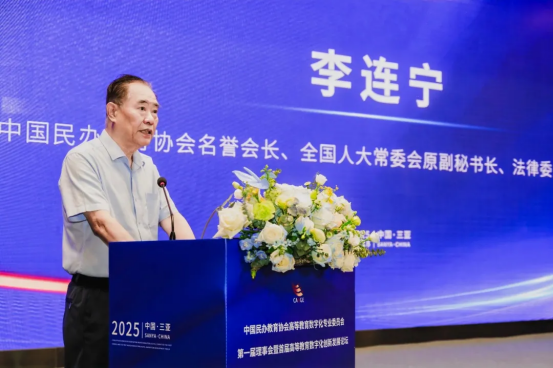中国民办教育协会名誉会长、全国人大常委会原副秘书长李连宁先生到会致辞,对参会的嘉宾表示热烈欢迎,并对民办高校在推动高等教育高质量发展中的重要作用给予充分肯定。他指出,民办高校作为我国高等教育体系的重要组成部分,在促进教育公平、满足多样化教育需求方面具有不可替代的作用。特别是在当前数字化快速发展的背景下,民办高校更应抓住机遇,实现数字化转型,提升教育质量和办学水平。