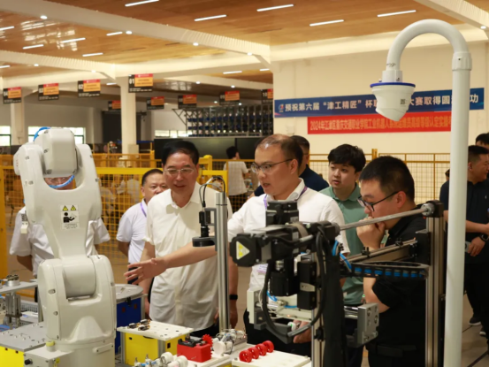 黄冠迪、李建萍等先后实地参观重庆交通职业学院渝交重工-凿岩技术创新中心、低空技术创新中心、新能源汽车技术中心、汽车文化馆、数字建造技术创新中心、智慧建造实训中心、元宇宙技术开发运用中心等产教融合实训基地。现场听取相关负责人关于实训基地建设、产教融合、全息数字课程研发等方面采取的措施和取得的成效,亲身体验学校全息超时空互动教学平台数字化教学模式,感受该校独具特色的办学理念。