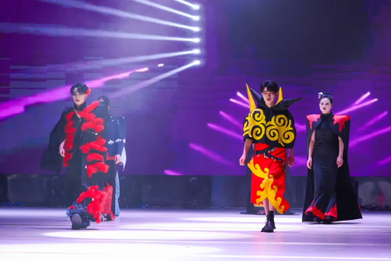 传统与创新,在此刻交汇。T台秀《技韵霓裳·非遗焕新》将苗绣、蜡染等非遗元素与现代剪裁巧妙融合,模特步履从容,衣袂翩跹。而舞蹈《雨涧春行图》则以柔美婉约的肢体语言,描绘出溪涧潺潺、新绿初萌的意境,少女们轻盈旋转、水袖轻扬,恍若春雨拂过心田,无声滋养万物生长。