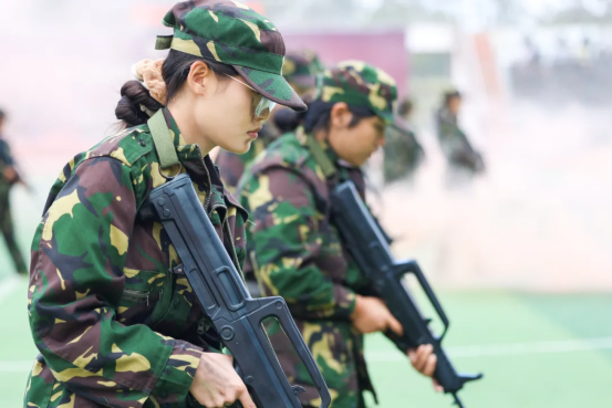 “听党指挥、能打胜仗、作风优良!”军训成果展示正式开始。队列方队步伐铿锵、军容严整;军体拳表演刚劲有力、虎虎生风;捕俘刀(匕首操)动作精准、杀气凛然;擒敌拳方队配合默契、气势如虹;战术表演情节逼真、惊心动魄。一个个精彩的课目展示,赢得现场阵阵掌声,充分展现了2025级新生经过14天军事训练后昂扬的精神风貌。
