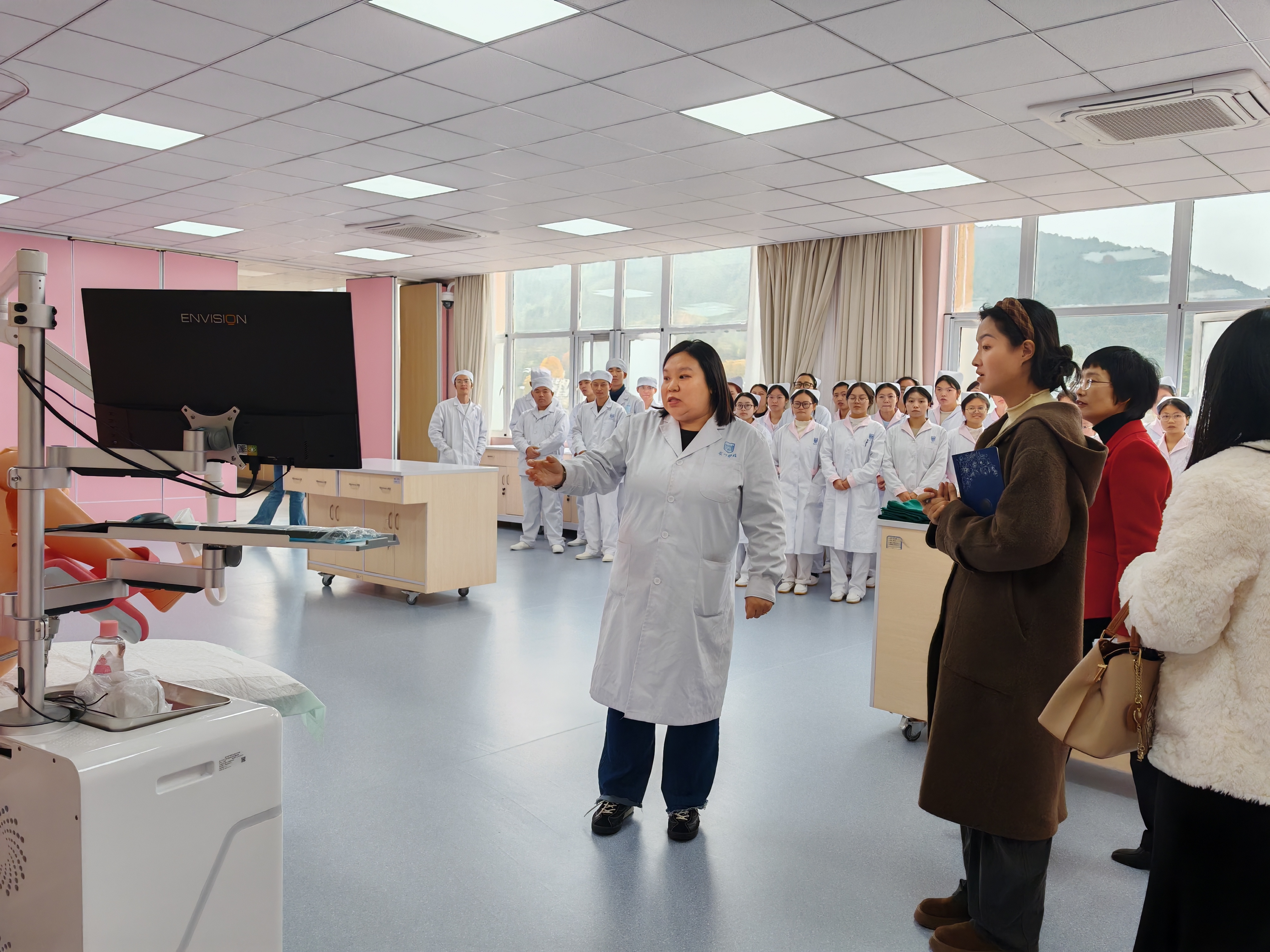 会后,在贵州护理职业技术学院副教授代世嗣及各实训室负责人的引导下,我校一行实地参观了生命科学馆、母婴护理实训层、虚拟仿真中心等核心教学场所。相关负责人对各类先进仪器设备进行了细致讲解与演示,让教师对这些高水平实训资源有了沉浸式的深入了解,为双方后续在课程共建、大赛指导与实训共享等方面的实质性合作奠定了坚实基础。