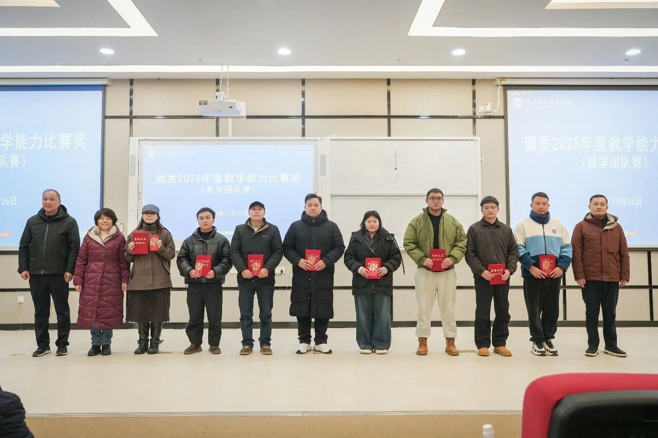 聂立新宣读表彰决定。在颁奖环节,与会校领导分批为获奖集体与个人颁奖。奖项涵盖优秀说课教师、校级示范人才培养方案、教学能力比赛个人赛与团队赛、优秀组织奖等多个类别。其中,蒋传书、文晨等教师荣获优秀说课教师一等奖;计算机应用技术等5个专业的人才培养方案获评“校级示范”;冷春春、蒋传书斩获教学能力比赛个人赛一等奖;《内科护理学》教学团队夺得教学能力比赛团队赛一等奖;生态医药与康养学院获得优秀组织奖。