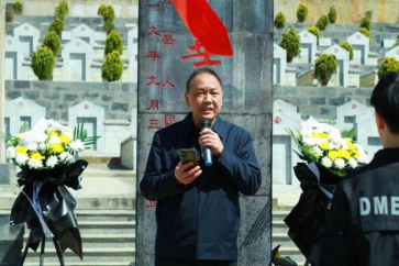 祭奠活动第三项,由现代商务分院党支部书记讲话。书记在发言中强调,我们仰视先辈们用鲜血染红的五星红旗,继承先烈遗志,踏着烈士们用生命铺成的道路奋勇前进。把爱国的高尚情怀,报国的坚强意志,化作报国的具体行动。让中国革命的重要思想洗礼我们的灵魂,让英烈见证我们的成长。我们要认真学习贯彻党的二十大精神,为把我国建设成为富强民主文明和谐美丽的社会主义现代化强国而努力学好社会科学与自然科学,成为中国特色社会主义现代化国家的建设者和接班人。思想永远昂扬,灵魂永不跪倒,步伐永远坚定,这就是我们面对烈士的铮铮誓言,我们将无愧伟大时代,我们一定奋然前行。