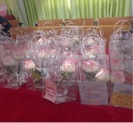 活动过程中,艺术分院学生会许多同学大胆发挥自己的想象力,用灵活的双手,将玫瑰的花材,裁剪、整枝、再根据不同的色彩、形状有层次的搭配在一起,制作出一束束美丽的花朵;同学们还在卡片写上对女教师的美好祝愿。大家在轻松愉快的氛围中结束。