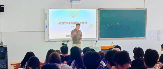 李逸伦老师以什么是高速铁路客运服务为引线,展开介绍了课程开设情况、毕业要求、实训室建设以及未来就业面向。他强调高速铁路客运服务专业就业前景比较广阔,但未来要做好这类职业同学们还需从多方面下功夫,肯吃苦,多积累,提升自身的职业素养。