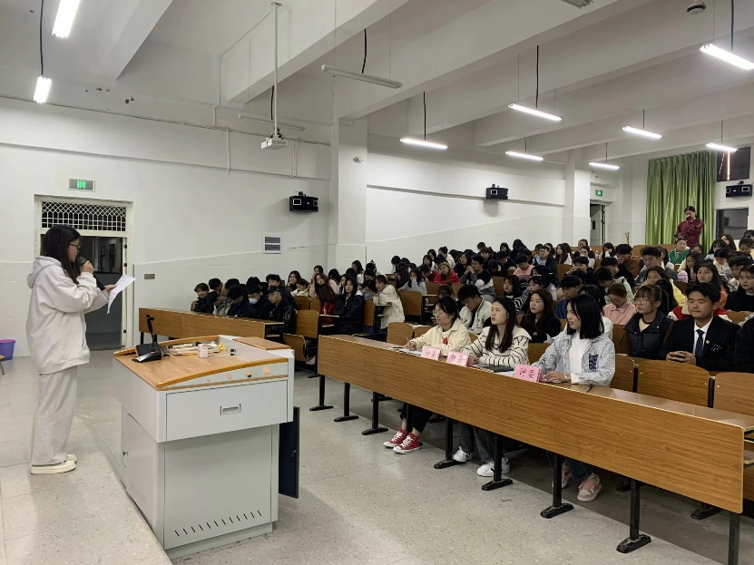 为深入学习贯彻习近平新时代中国特色社会主义思想和党的二十大精神,落实“强国复兴有我”主题宣传,引导广大青年学生自觉把思想和行动统一到党的二十大精神上来,大力营造凝心聚力、团结奋斗的浓厚社会氛围。11月9日晚上,乡村振兴产业学院(现代商务学院)于三号教学楼第二阶梯教室举办了“强国复兴有我”主题宣讲比赛。本次评委由乡村振兴产业学院(现代商务学院)团总支书记袁优、团学科员夏婷老师及辅导员欧阳云雪老师担任。活动由2023级高速铁路客运服务(1)班赵柏添同学主持。