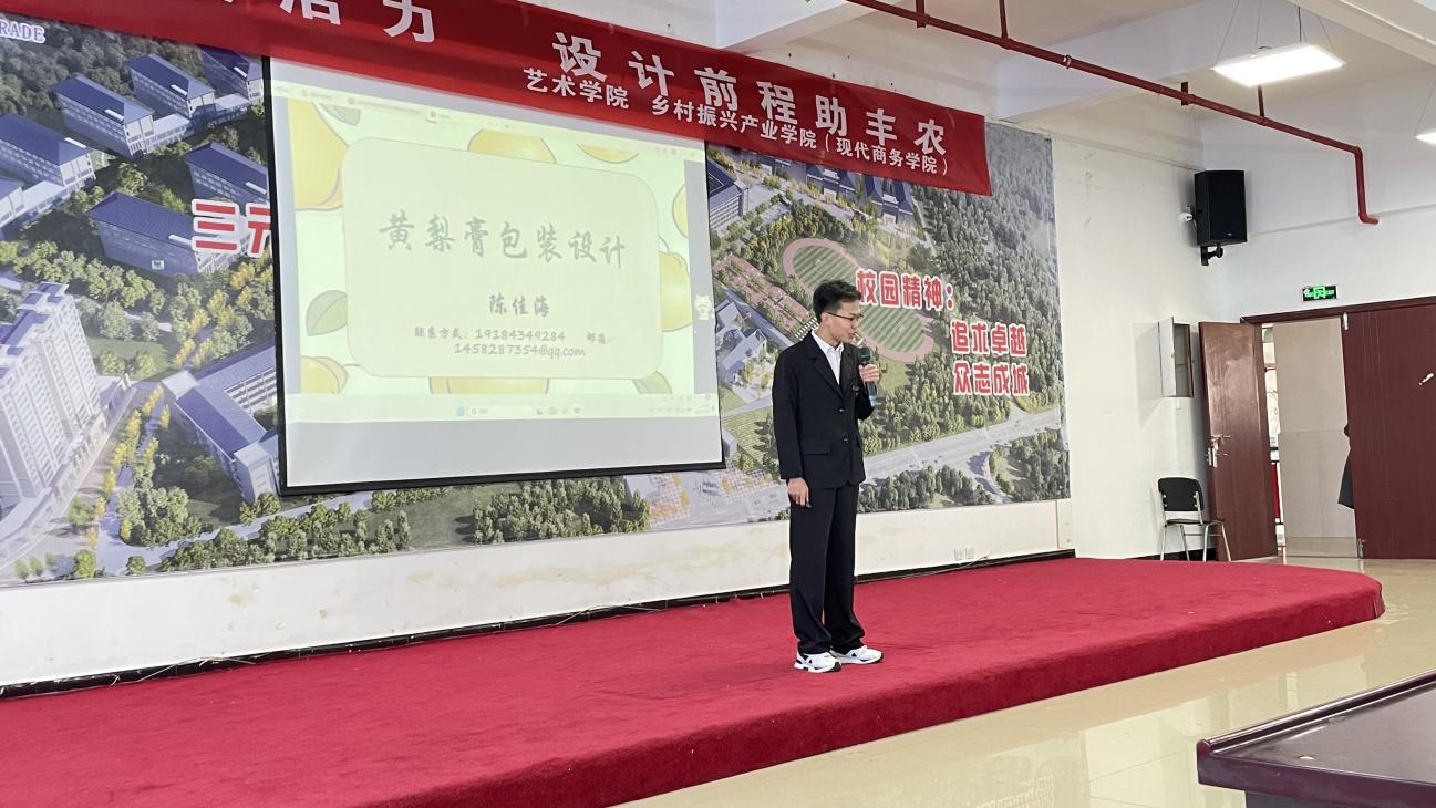 为进一步推进产教融合、校企合作,发挥各专业学生的技能特长,打造创意创新教育,利用地域优势发展地方特色。12月5日下午,艺术学院于学术报告厅举行2023秋季创意设计大赛决赛暨颁奖仪式。进入决赛的全体学生来到报告厅准备等候竞赛,三棵树绿色食品有限公司董事长马关华出席比赛现场,艺术学院广告教研室组长符候强、专职教师黄克松、陈蝶、乡村振兴产业学院(现代商务学院)安梅梅担任此次比赛评委,乡村振兴产业学院(现代商务学院)黄瑶主持比赛。