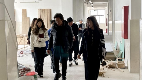 22日,周正军和各部门负责人来到艺术学院教学楼三、四楼查看音乐授课室、舞蹈实训室装修进度。同时,还排查了施工安全隐患,保证施工有序开展。