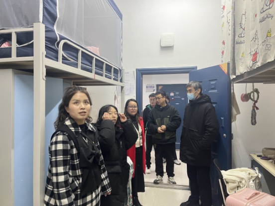 晚修结束后,勒系琳副校长又带领乡村振兴产业学院(现代商务学院)常务副院长杨一梅、学工科科长吴国凡、团总支书记袁优及学院全体辅导员走访学生宿舍,慰问学生,并排查寝室安全。在学生宿舍,勒系琳副校长与同学们交流。询问同学们的假期学习与生活、新学期的安排与打算、未来的发展规划等,耐心倾听同学们的心声与诉求,叮嘱同学们关注天气变化、注意保暖,加强锻炼,保持身心健康,练就过硬本领,努力成长为勇担重任的时代新人。