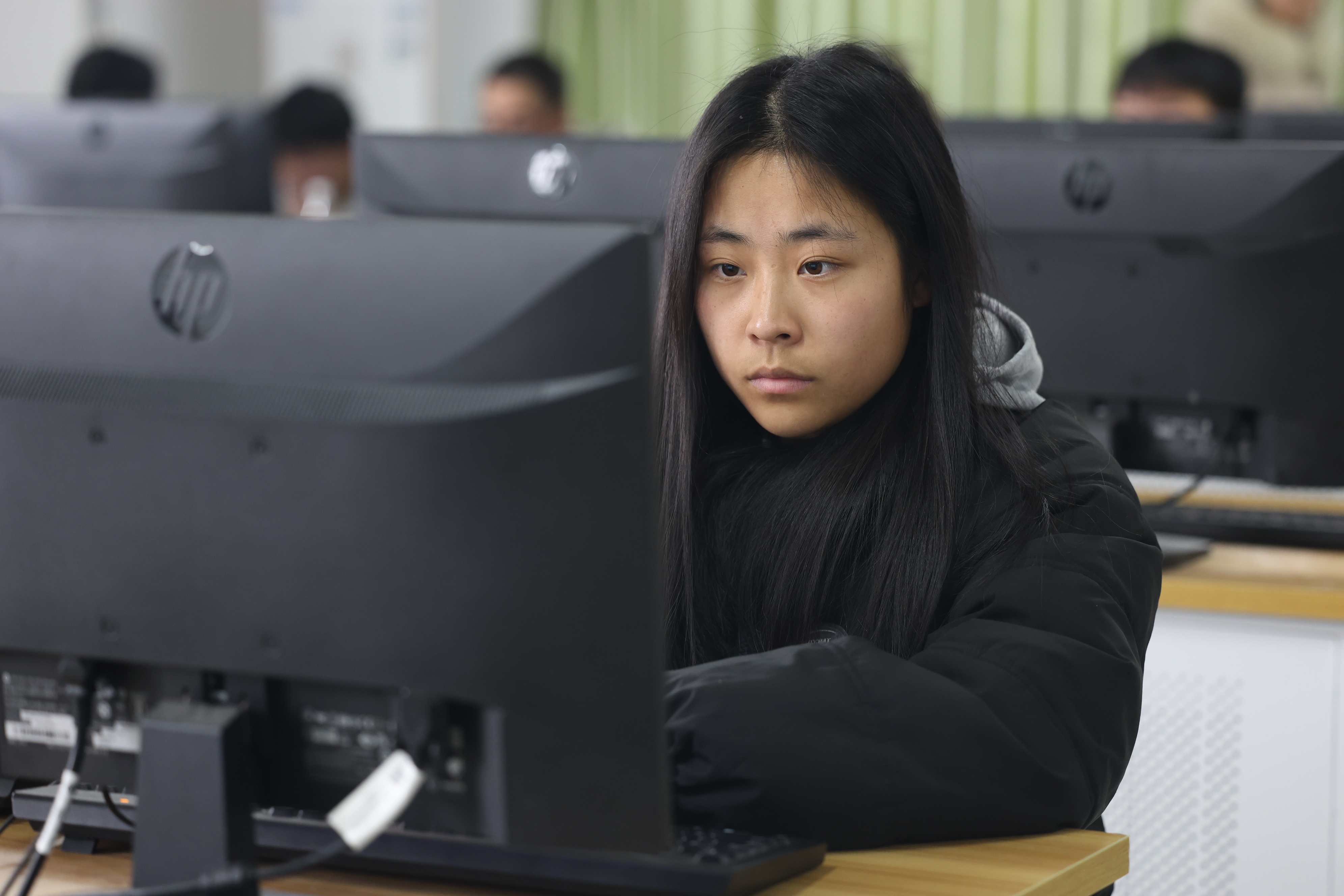 比赛伊始,同学们大显身手,胸有成竹、从容不迫的运用所学知识解题。随着时间的推移,赛场上紧张激烈的气氛愈发高涨,碰到难题的同学们也没有退缩,争分夺秒、锲而不舍的选用不同的算法解答。