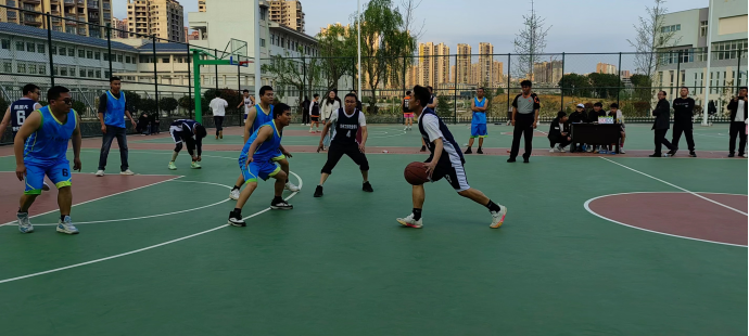 他们一改在讲台上的沉稳、儒雅之气,发球、运球、上篮、传球、断球,配合默契;屈膝、压腕、出手、空心……雄姿英发,奋力拼杀,构成了赛场上最美的风景线。老教师老当益壮,青年教师生龙活虎,队员们积极进攻,严密防守,巧妙抢断,精准投射,高超的球艺、精彩的配合赢得了场外师生的阵阵喝彩。