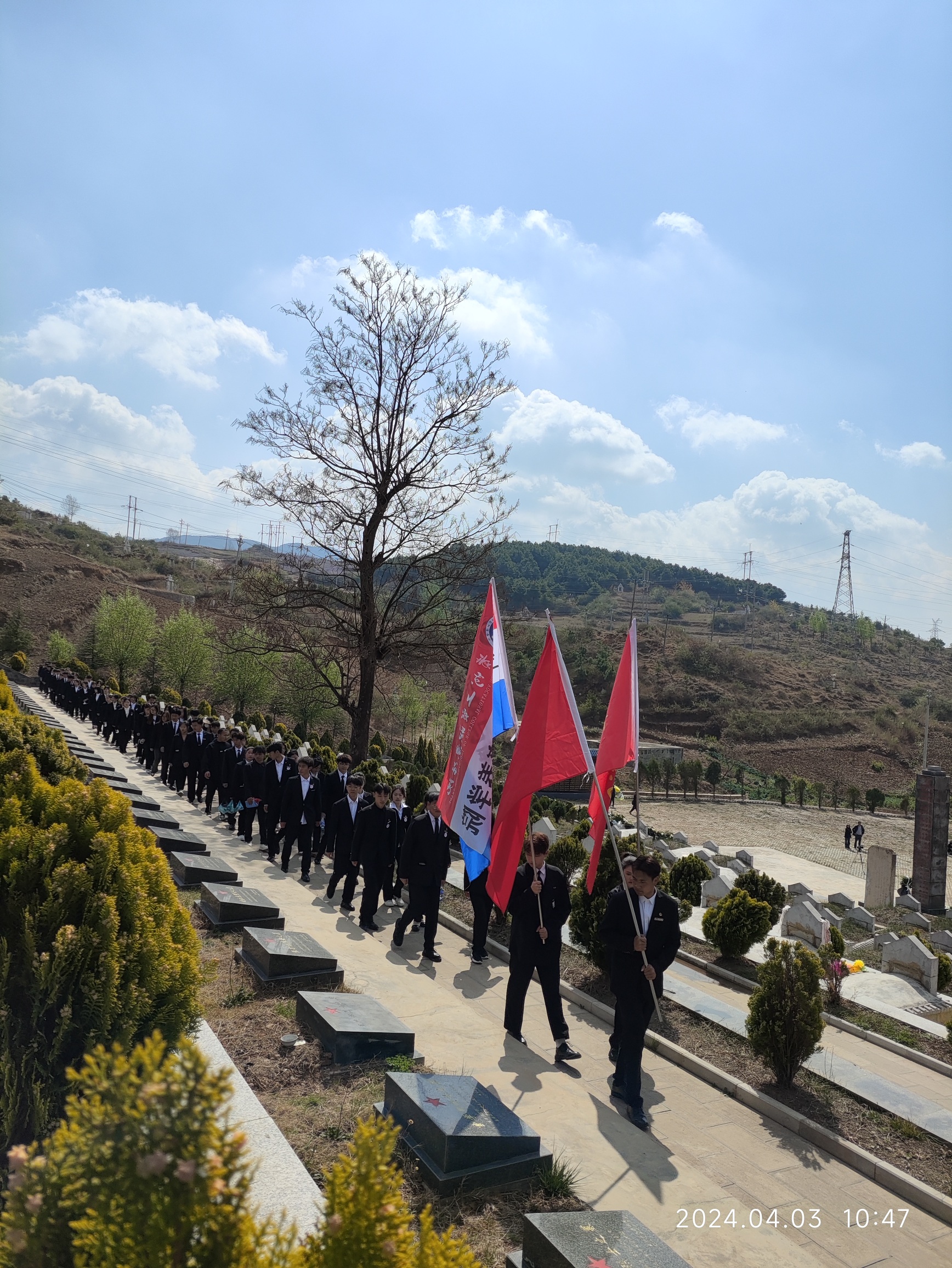 在活动过程中,所有人共同重温入党誓词、入团誓词,再次坚定了理想信念,同志们纷纷表示要始终秉持着烈士们的崇高精神,为祖国的繁荣富强贡献自己的力量。随后,教师和学生代表分别向烈士纪念碑敬献了花束,表达了对烈士们的崇高敬意和无尽缅怀,同学们深深鞠躬表达对烈士无私奉献与无惧生命的精神敬佩。