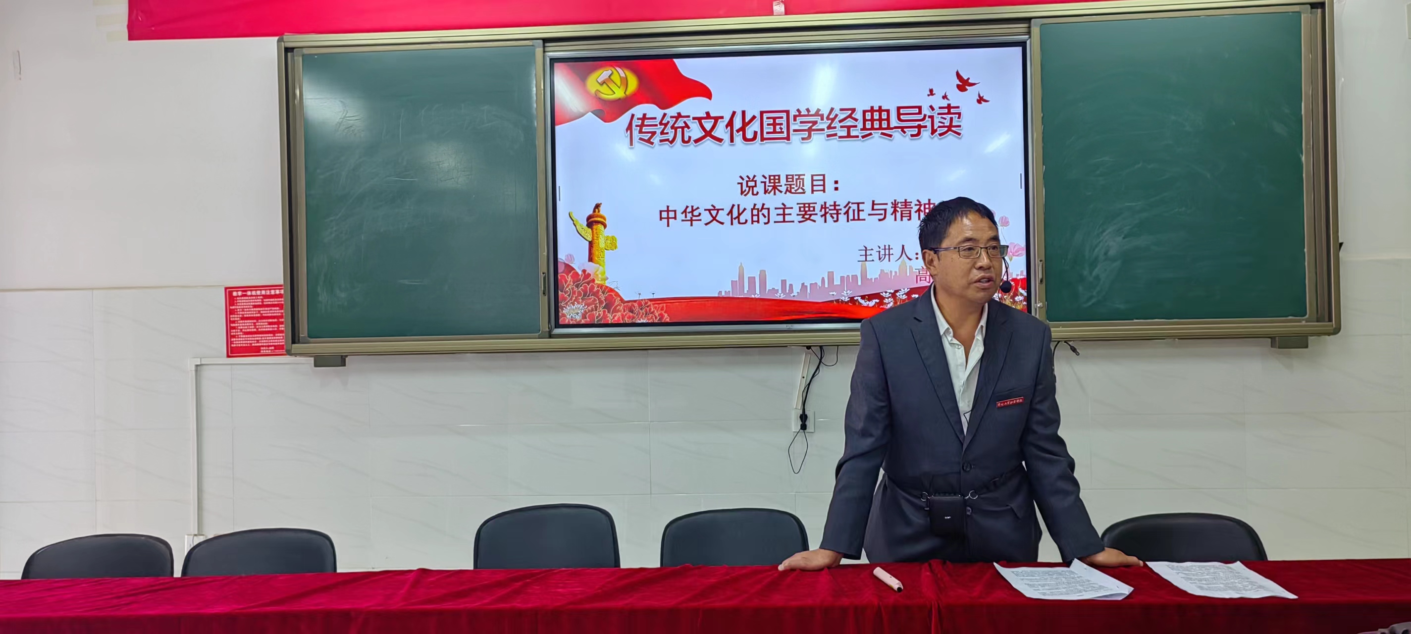 耿芳国老师以“中华文化的主要特征与精神”为主题,聚焦课堂教学设计能力,围绕“设计意图、教学目标、教学内容、教学重难点、教学活动形式、教学活动过程、教学反思”七个方面深入浅出地为教师们“传经送宝”。他还强调了说课中的要求及注意的问题,教学活动过程辅以具体的实例,将理论结合实际,讲解精准,指导到位,实用性强。