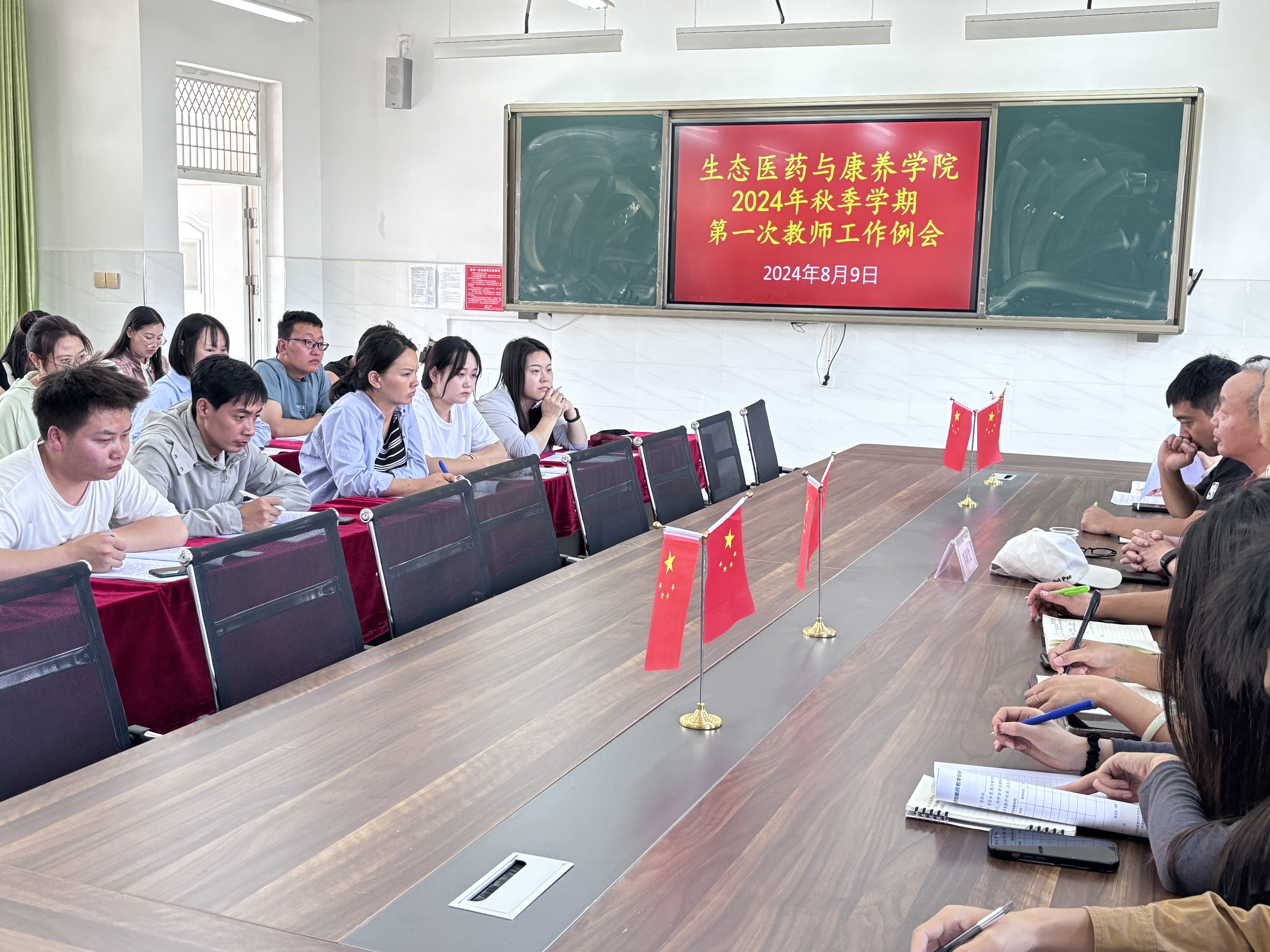 8月9日在生态医药与康养学院会议室召开2024年秋季学期第一次教师工作例会,参会人员主要有校党委委员、副校长李新发,生态医药与康养学院全体教师。本次会议由王方对主持。