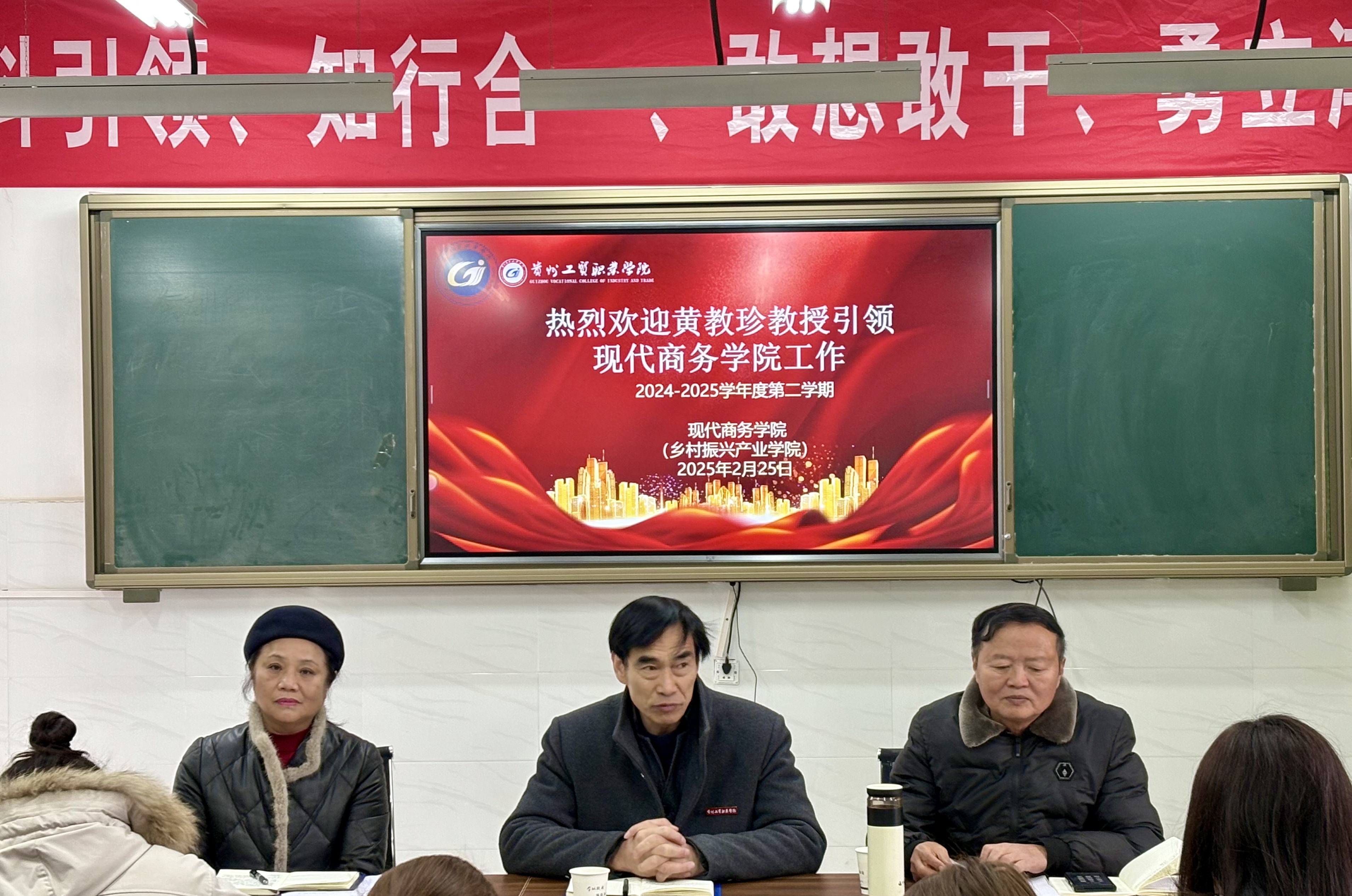 为明确新学期工作方向,凝聚发展共识,现代商务学院(乡村振兴产业学院)于2月25日于3号教学楼307会议室召开全体教职工2024-2025学年度第二学期第一次工作例会。校党委委员、常务副校长勒系琳,现代商务学院(乡村振兴产业学院)党支部书记张凤玉,院长黄教珍及全体教职工出席会议.会议由勒系琳主持。会议伊始,勒系琳宣布学院重要人事任命并表示祝贺,他表示,此次调整是学校深化管理改革、强化党建引领的重要举措,希望新班子紧密协作,以“技能贵州”建设为契机,推动学院迈上新台阶。