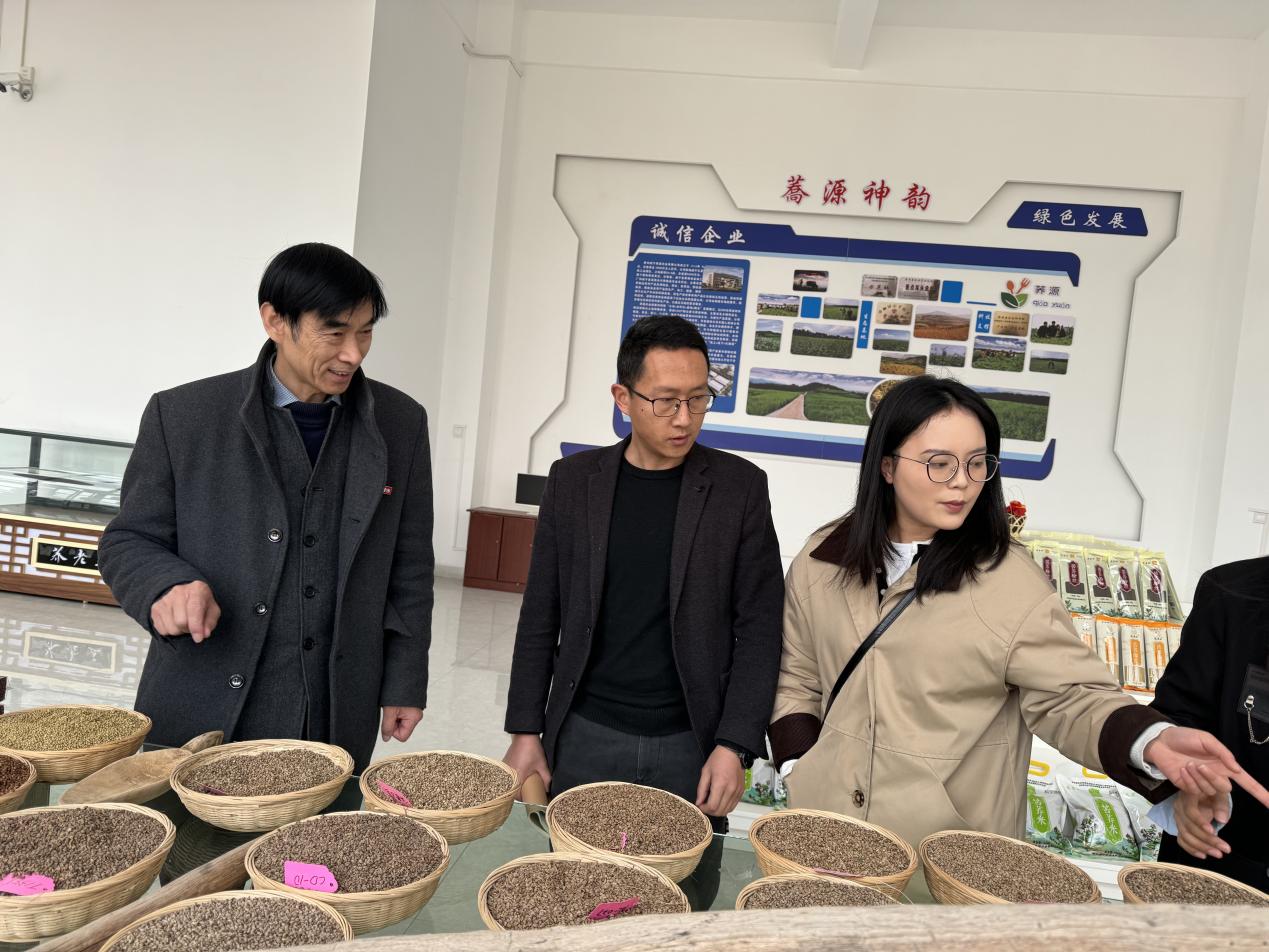 在威宁荞源农业有限公司负责人陪同下,校方团队参观了企业生产车间及电商运营中心,深入了解企业发展历程与核心成果:公司近年来获评“贵州省农业产业化重点龙头企业”,其荞麦系列产品(荞茶、荞面、荞酒等)远销全国,并成功打造“威宁苦荞”地理标志品牌。