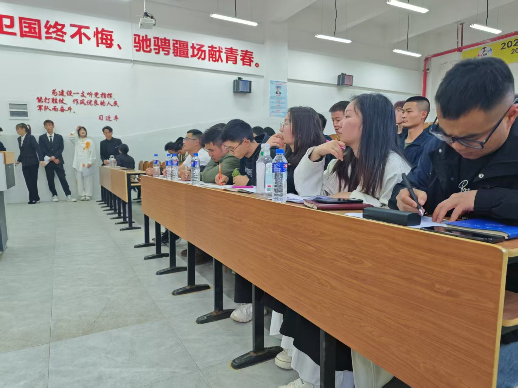 为推动校园文化建设,弘扬中华优秀传统文化。4月16日,国防教育与体育学院在一教五阶教室开展“书香工贸·经典之声”第一届校园中华经典诵读大赛院级选拔赛。本次大赛以诵读中华经典诗文为主要内容,旨在提升学生的语言表达能力,增强文化自信,营造浓厚的书香校园氛围。评委由学院党支部书记龚德圣、教务科长施健及辅导员组成