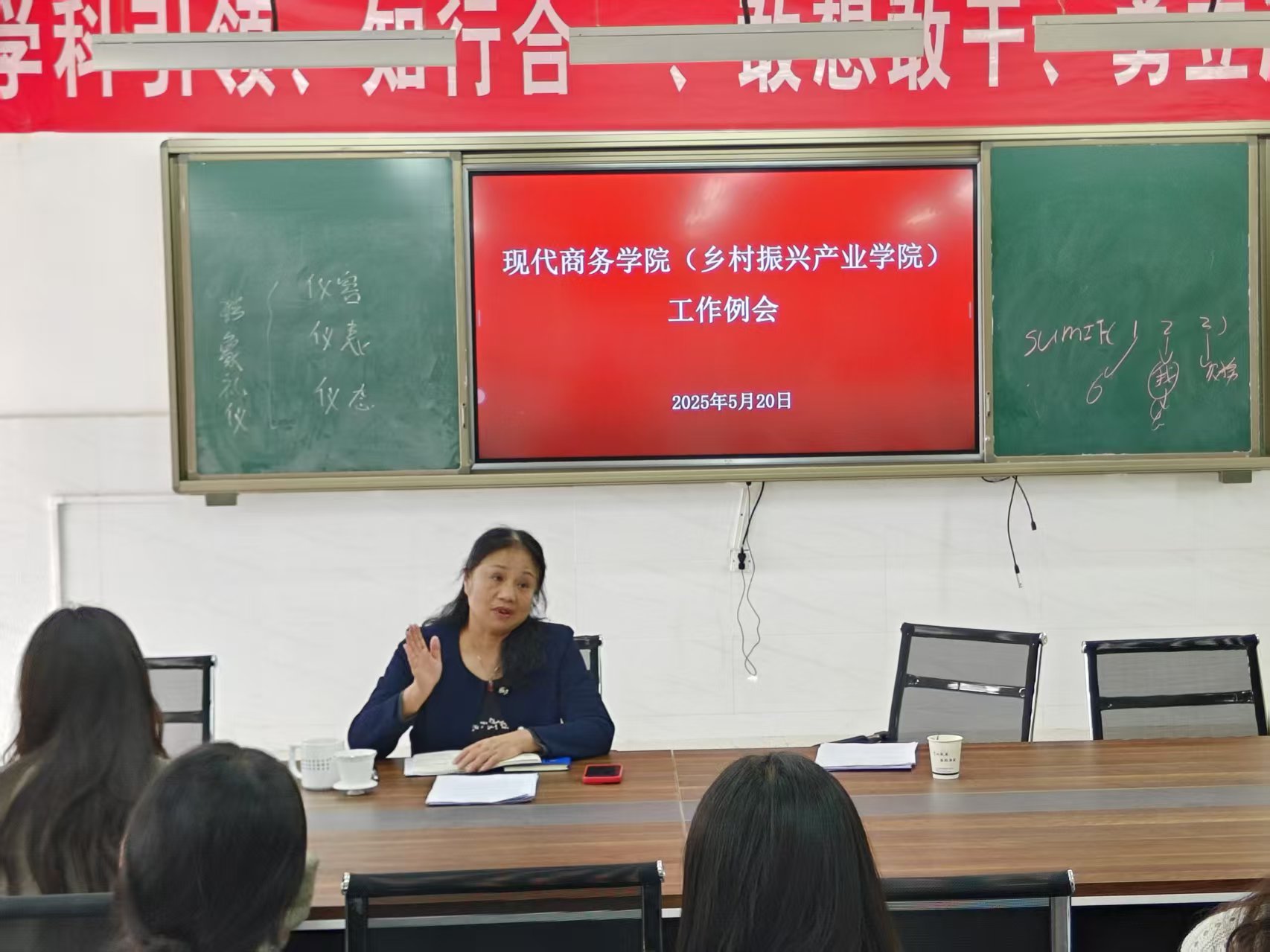 为进一步推动现代商务学院(乡村振兴产业学院)教育教学与学生工作的高效发展,5月20日下午在三教东区307会议室召开学院全体教师工作例会,本次会议由院长黄教珍主持。
