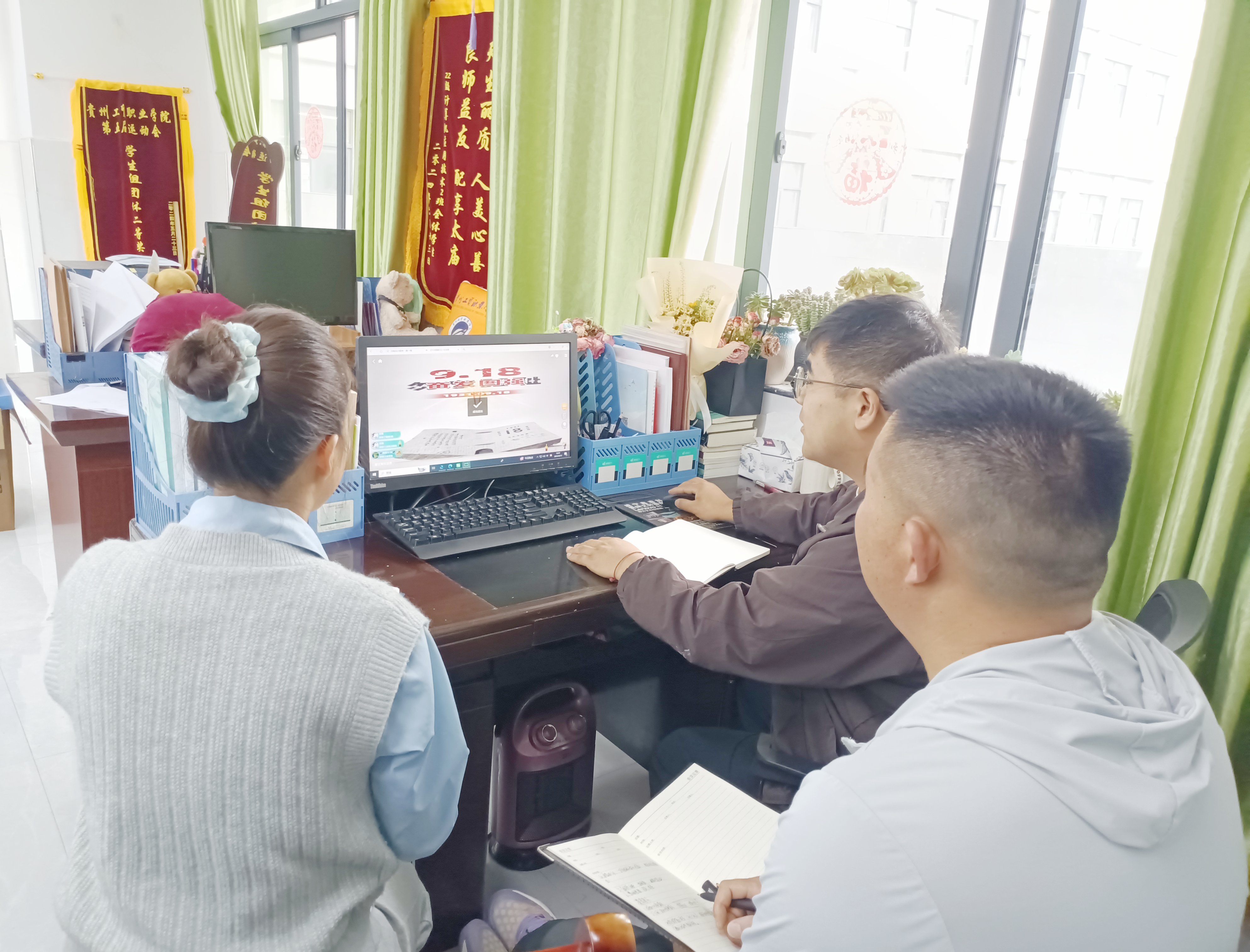 今年是中国人民抗日战争暨世界反法西斯战争胜利80周年,也是九一八事变爆发94周年。为铭记历史、缅怀先烈,弘扬爱国主义精神,9月18日,智造工程学院(新能源产业学院)开展“铭记‘九一八’砥砺奋进新征程”系列主题教育活动,引导全院师生以实际行动践行爱国主义精神和育人使命。学院党支部、团委、学工科、教务科教师代表在1教西区209办公室开展“铭记‘九一八’云端祭扫”活动。党支部书记朱朝应带领全体教师回顾“九一八”事变历史。活动中,教师们通过线上“云祭扫”平台,向为国捐躯的革命先烈鞠躬致敬、敬献虚拟鲜花,以科技赋能传统缅怀仪式,表达对先烈的深切哀思和崇高敬意。教师们表示,将坚持以立德树人为根本任务,把爱国主义精神深度融入教育教学全过程,切实肩负起新时代育人使命,以实际行动传承红色基因,引导学生铭记历史、珍爱和平。