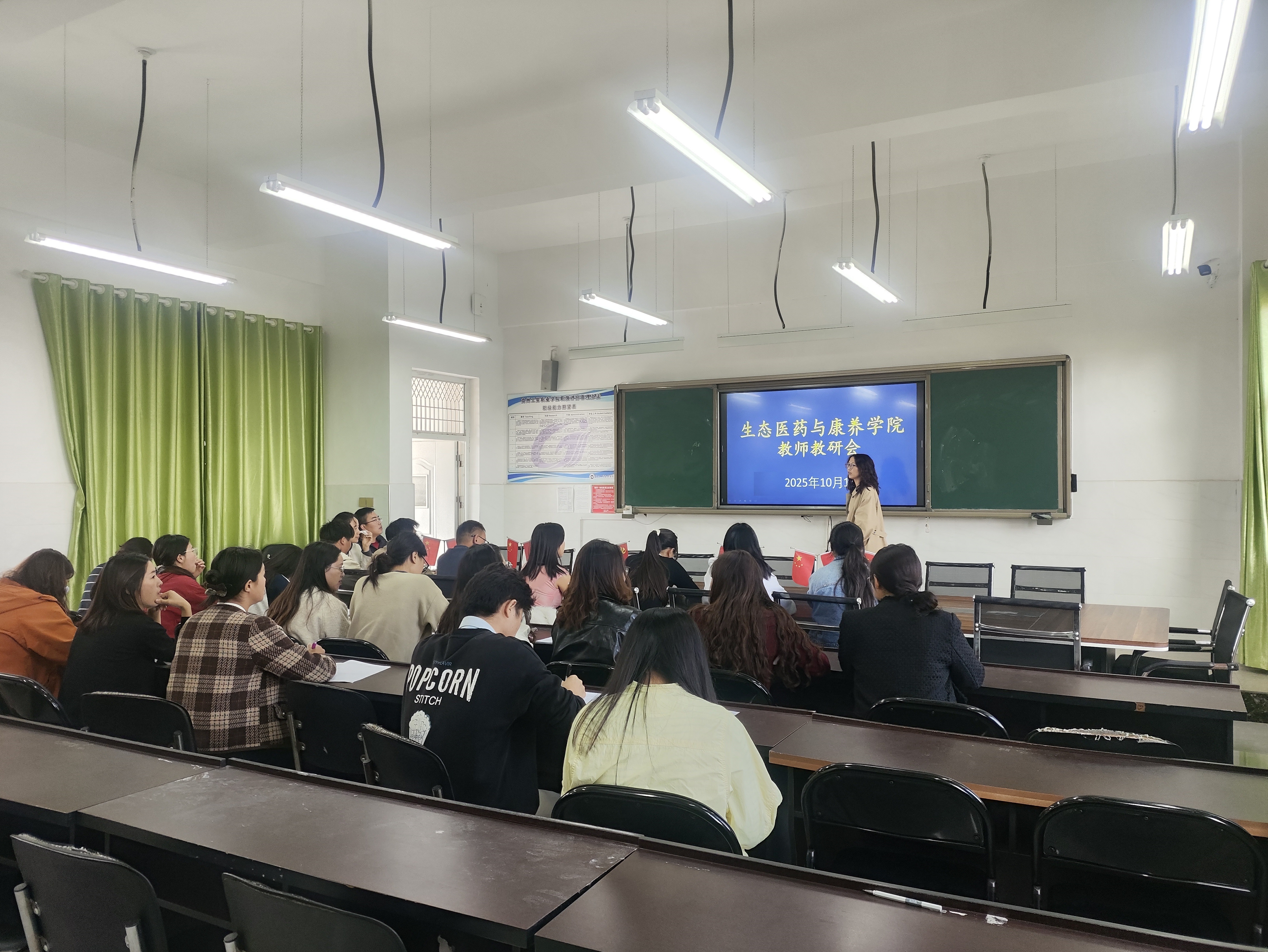 为深入贯彻落实学校教学质量提升工程,进一步规范教学管理,改善实践教学条件,确保本学期教学工作有序推进。10月15日,生态医药与康养学院组织召开专题工作会议,全面部署期中教学检查与实验实训室整改两项重点工作。会议由医护教研室主任韩贤琴、康养教研室主任马丽莎共同主持,学院全体专任教师参会。