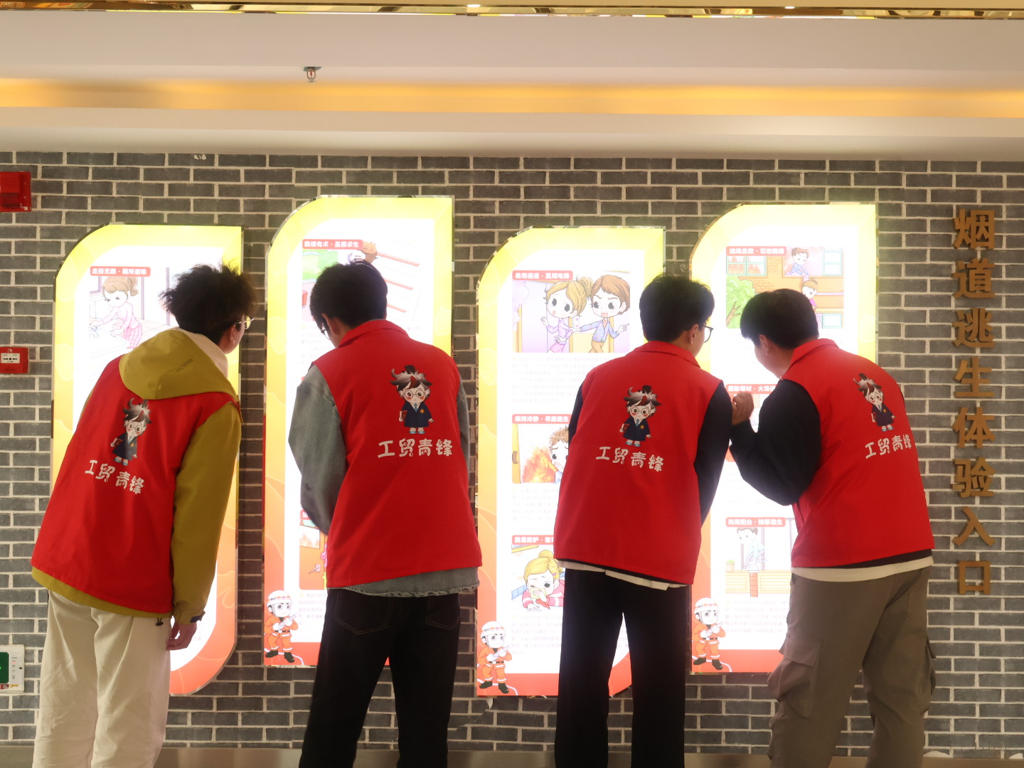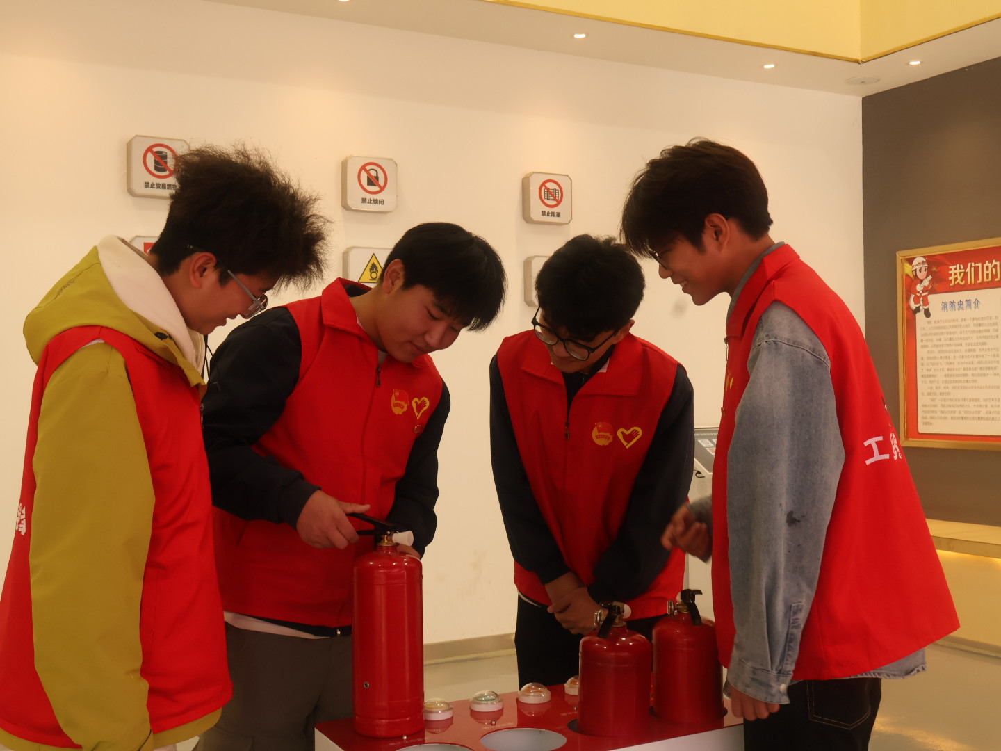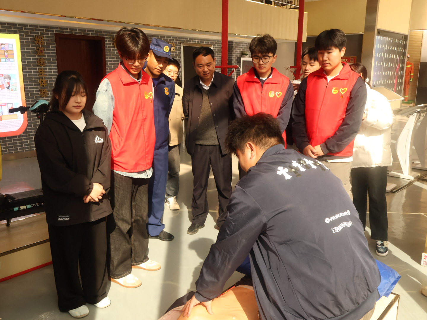 在消防科普教育馆内,同学们沉侵式体验了丰富的图文展板、仿真模拟场景和互动教学设备,系统地学习了火灾预防核心知识。结合触目惊心的校园火灾真实案例,讲解员聚焦宿舍违规用电、实验室易燃易爆品操作不当等的常见风险,进行针对性警示教育。随后,同学们走进模拟烟热逃生通道,在高度仿真的昏暗烟雾环境中,运用所学要领有序撤离,将理论知识转化为肌肉记忆,有效锤炼了应急避险与自救互救的实战能力。