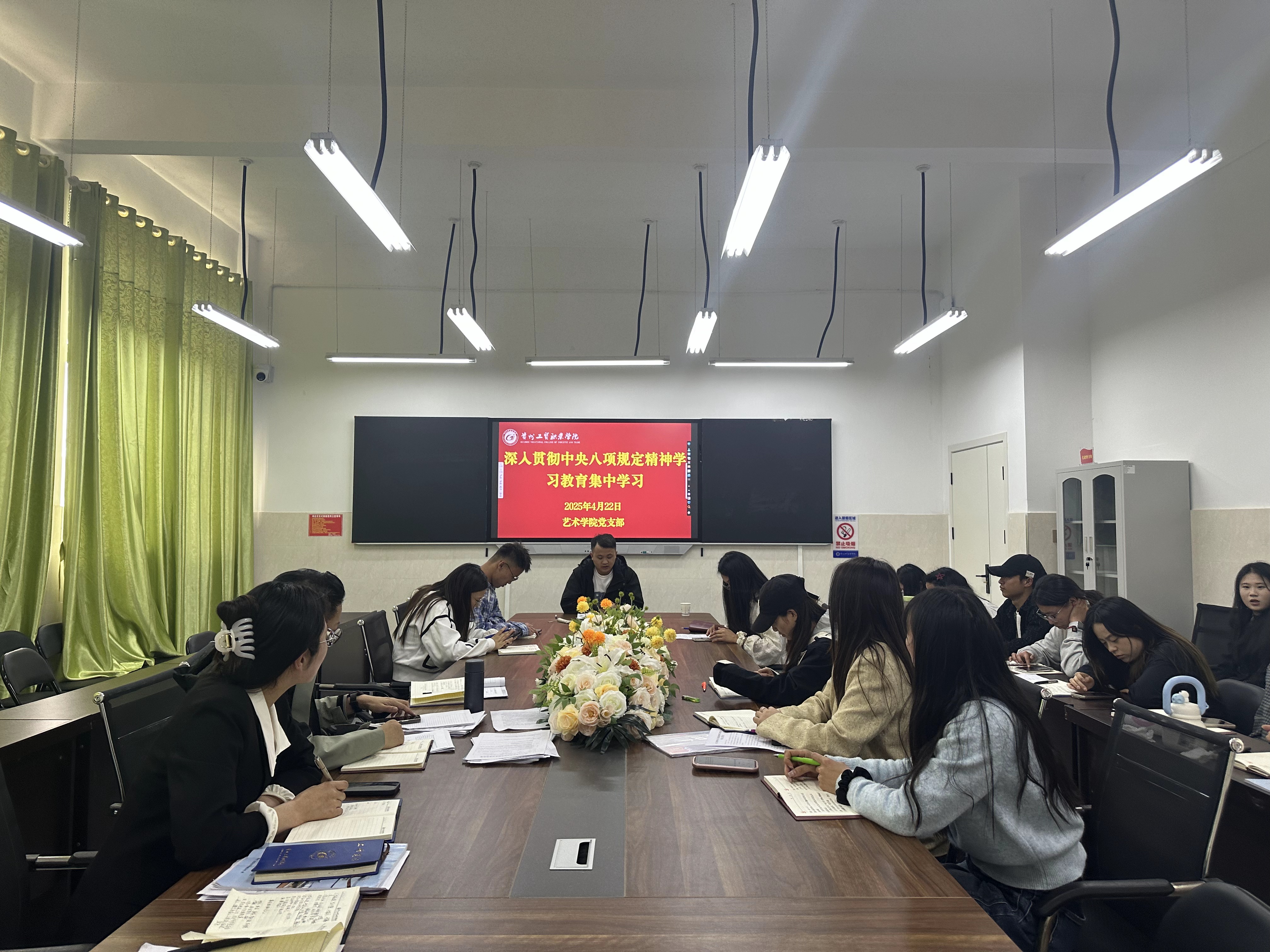 4 月 22 日,艺术学院开展学习中央八项规定精神专题辅导。邀请到马克思主义学院党支部书记李加茂,为学院全体党员深入解读中央八项规定精神,助力党员深刻领会其内涵,强化作风建设意识。李加茂在辅导中,回溯了中央八项规定出台的历史背景。自 2012 年 12 月 4 日中央八项规定发布以来,它便成为新时代中国共产党作风建设的关键指引。从整治 “舌尖上的浪费” 到杜绝 “车轮上的腐败”,这一系列举措切实扭转了党风政风,带动社风民风持续向好,赢得了党心民心,成为作风建设的 “金色名片”。