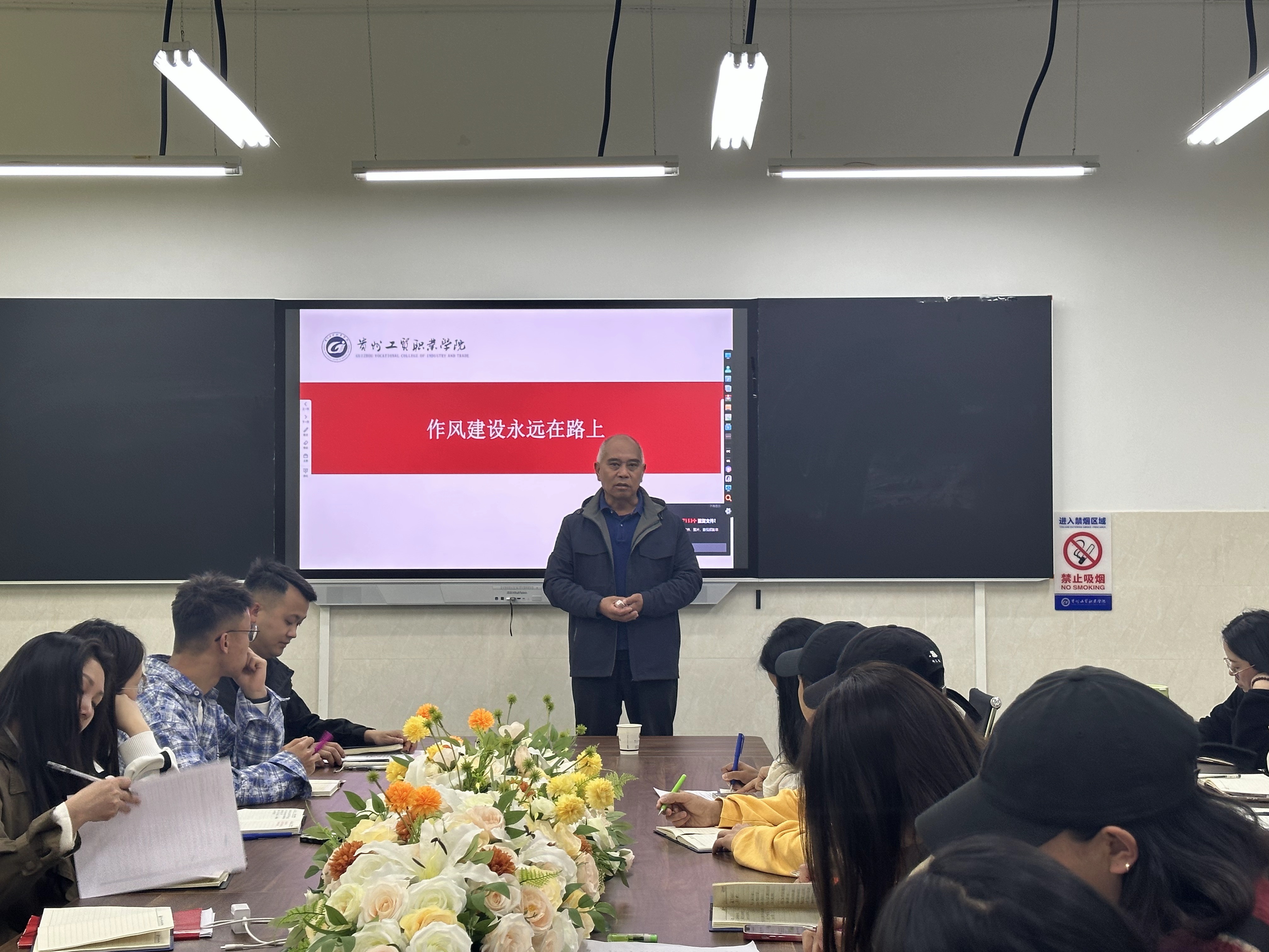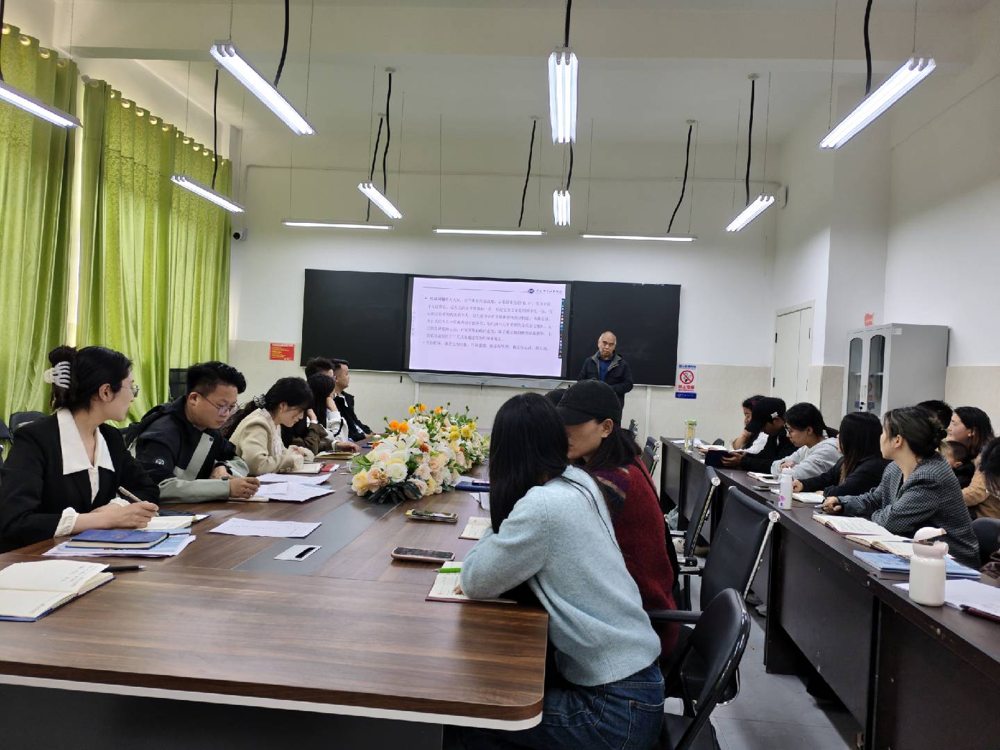 在讲解中央八项规定及其精神实质时,李加茂详细解读了八项规定的具体内容,包括改进调查研究、精简会议活动等八个方面,以及实施细则的五个方面 30 条内容。他强调,中央八项规定精神的实质在于厉行勤俭节约、反对奢侈浪费、坚持廉洁从政和务实工作作风,而违反这一精神的行为主要体现在 “四风” 问题上,即形式主义、官僚主义、享乐主义和奢靡之风。同时,还结合实际案例,对各类违纪行为的表现进行深入剖析,让师生们对中央八项规定精神有了更为直观和深刻的认识。