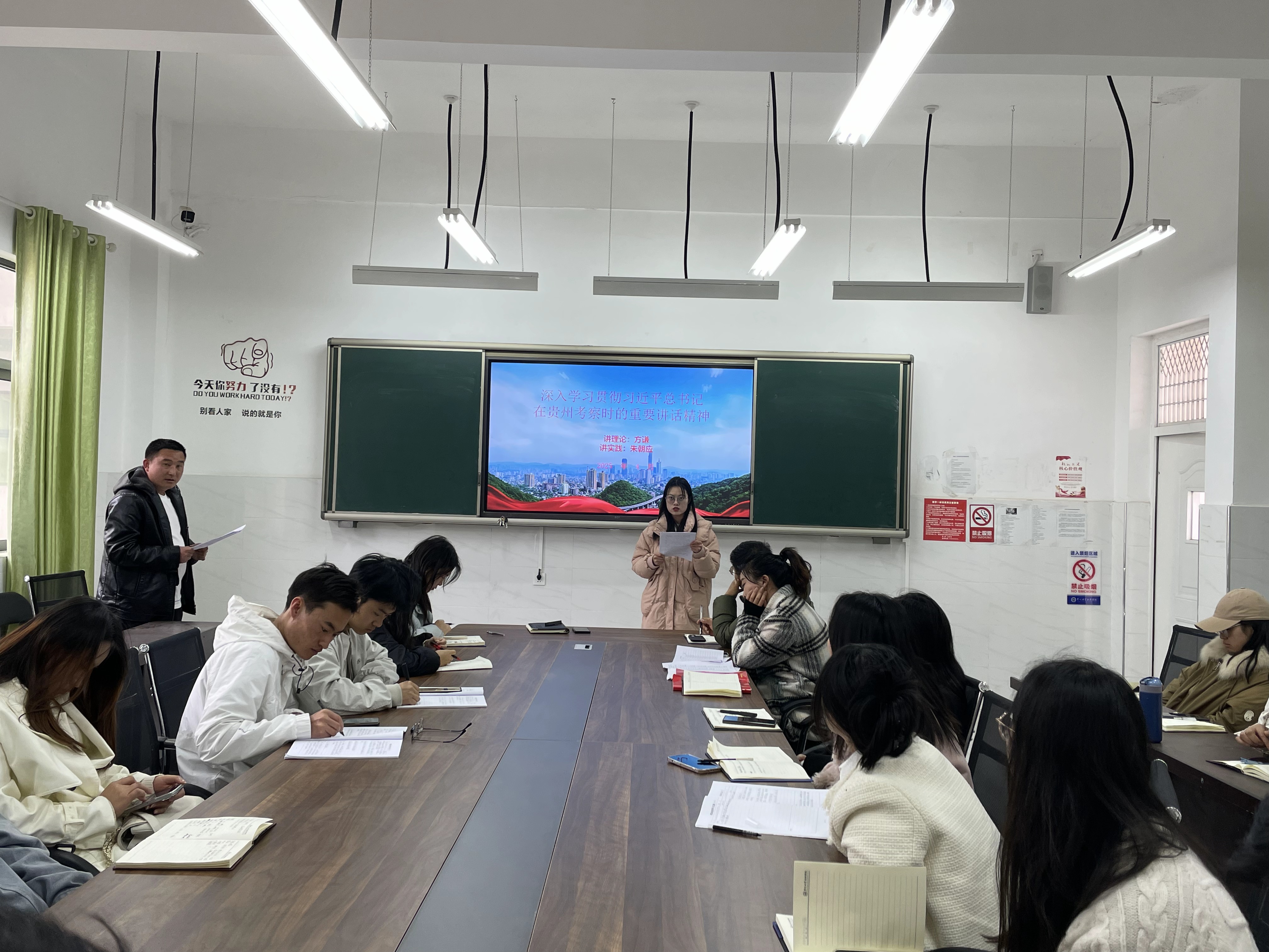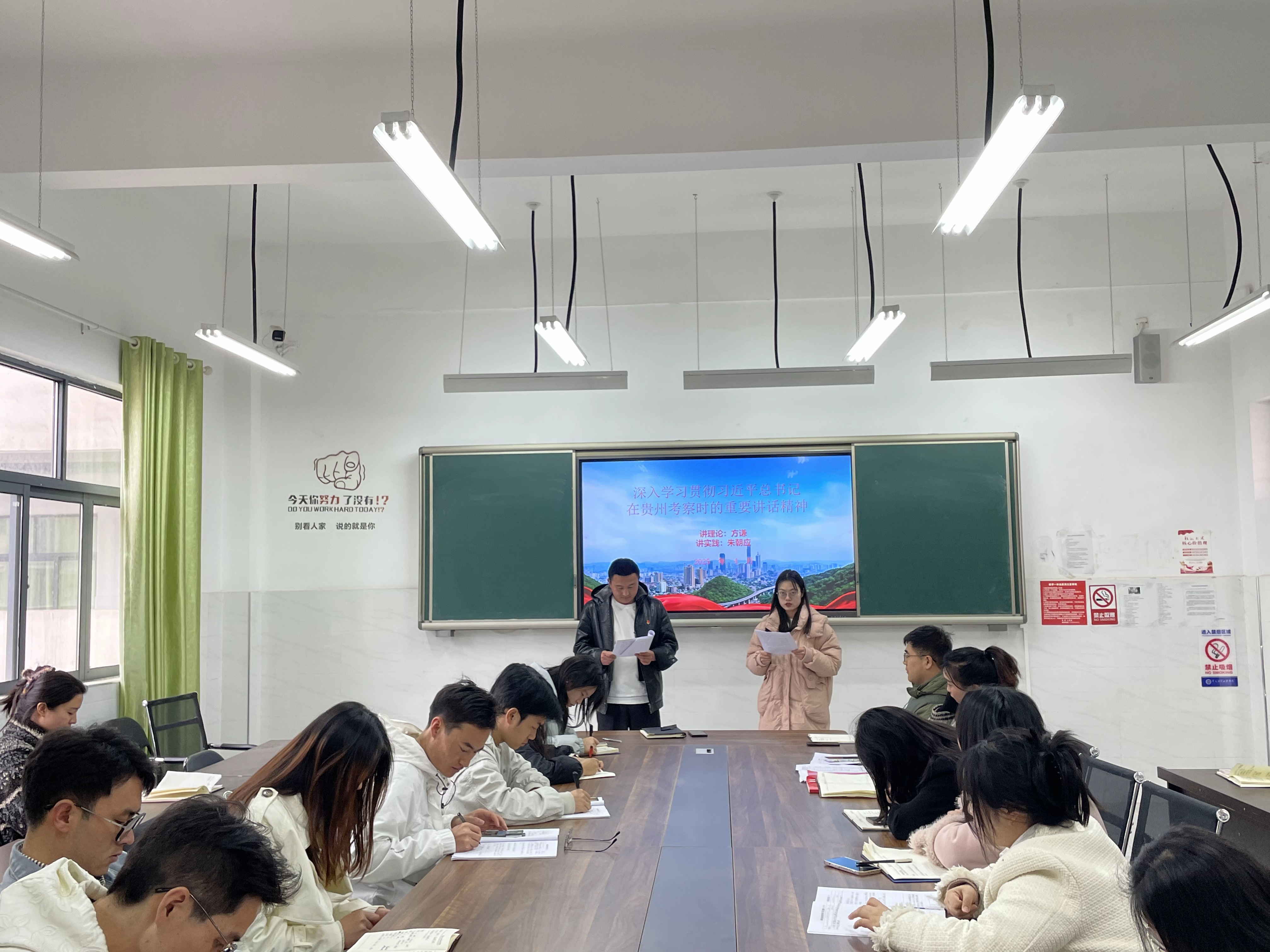 4月24日,智造工程学院党支部开展“理论宣传二人讲”活动。通过“一人讲理论,一人讲实践”的方式,深入、系统地讲解习近平总书记在贵州考察时的重要讲话精神的实质内涵及具体落实路径。