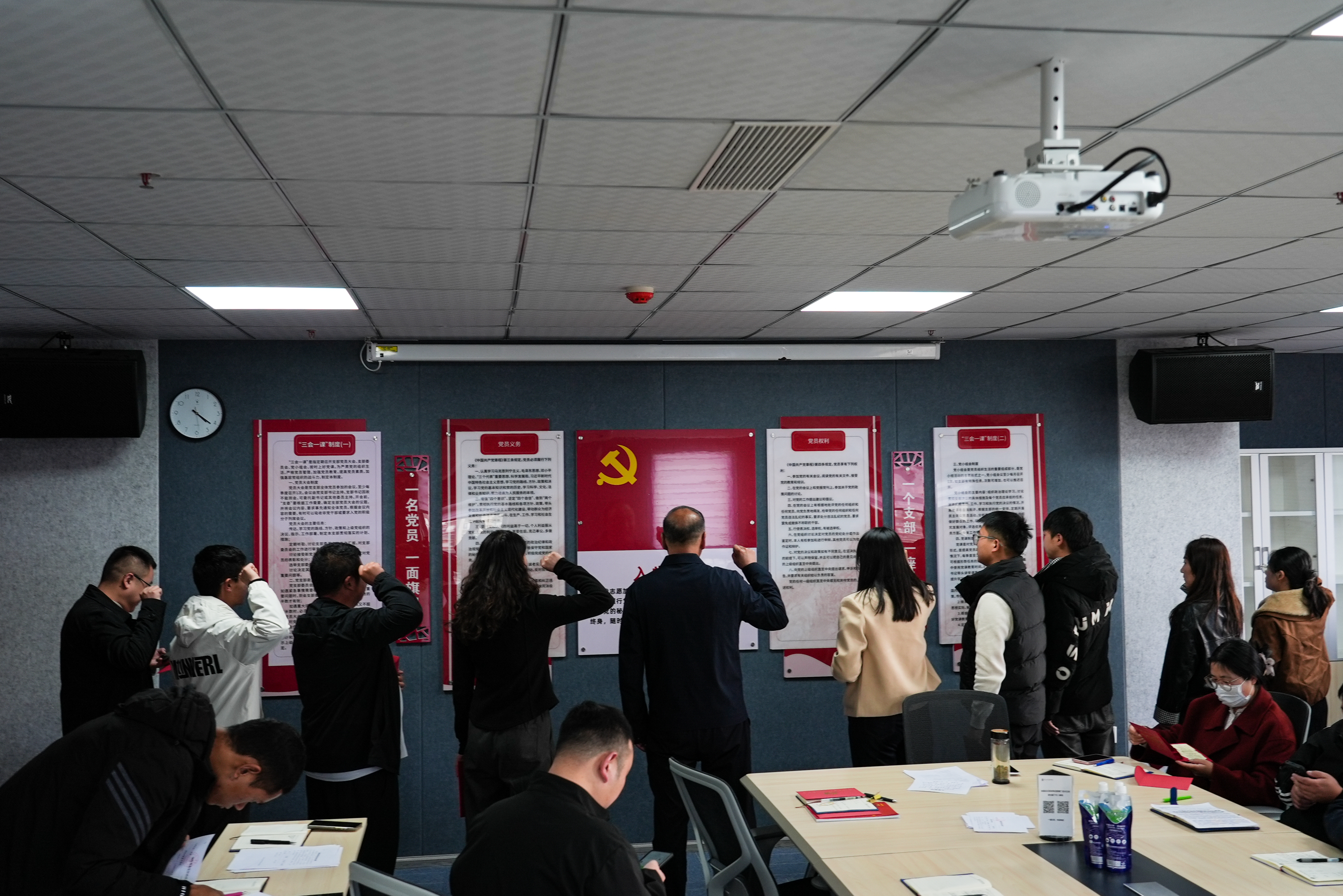 会议最后为党员过“政治生日”。曾隆槐代表支部向过“政治生日”的党员赠送贺卡。党员代表发表深情的“生日感言”,回顾入党初心,分享成长历程。表示在今后的工作中,将把这份组织的温暖与激励,转化为强大的精神动力,持续强化理论武装,深入学习党的创新理论,不断提高政治判断力、政治领悟力、政治执行力。将始终保持思想上的先进性和纯洁性,时刻牢记党员身份,恪尽职守,勇于担当,在本职工作中再创佳绩。最后,在曾隆槐同志的领誓下,过“政治生日”的党员面向党旗,重温入党誓词,铿锵有力的誓言回荡在党员活动室,再次坚定了大家的理想信念。