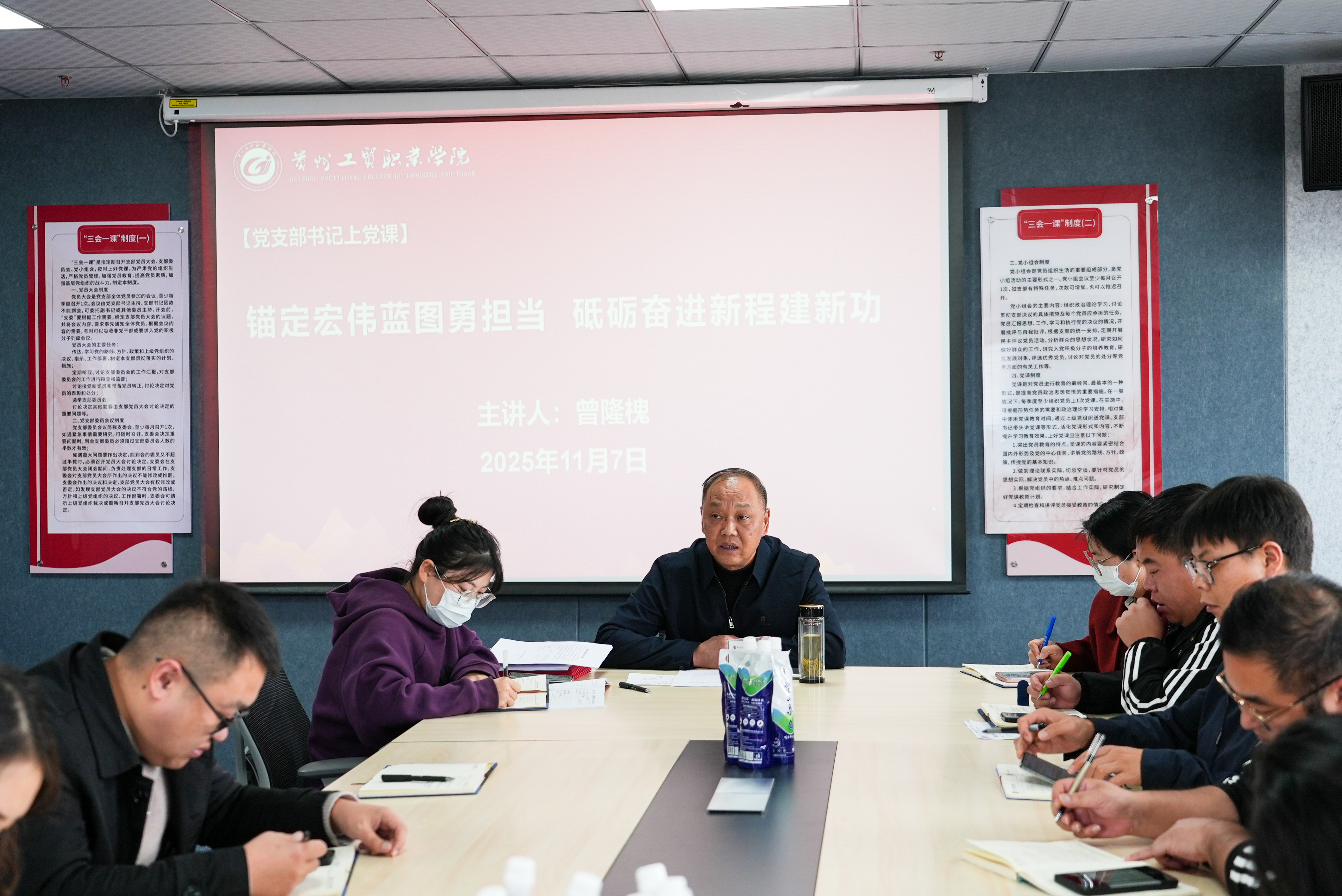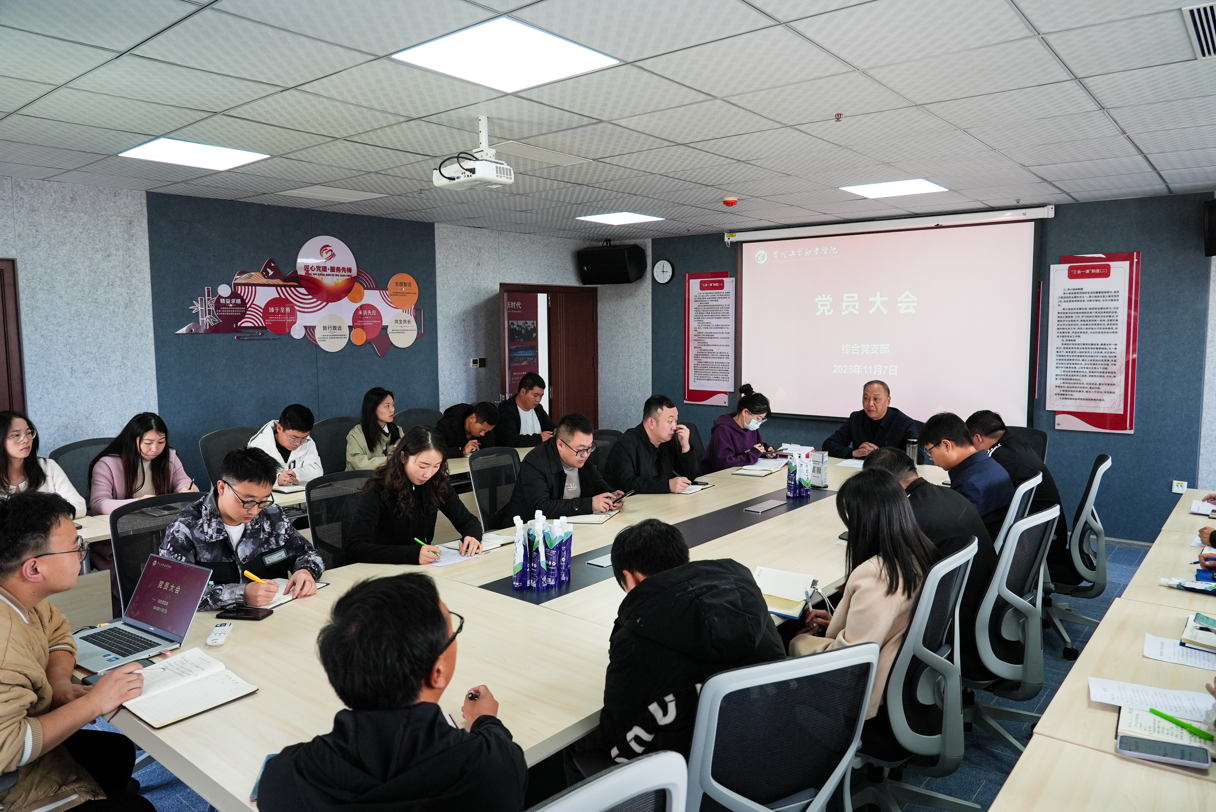 11月7日下午,综合党支部在417党员活动室召开党员大会,会议对党的二十届四中全会精神进行专题学习、开展党支部书记上党课、吸收预备党员、为党员过政治生日。会议由党支部书记曾隆槐同志主持。