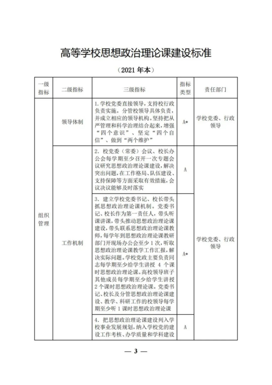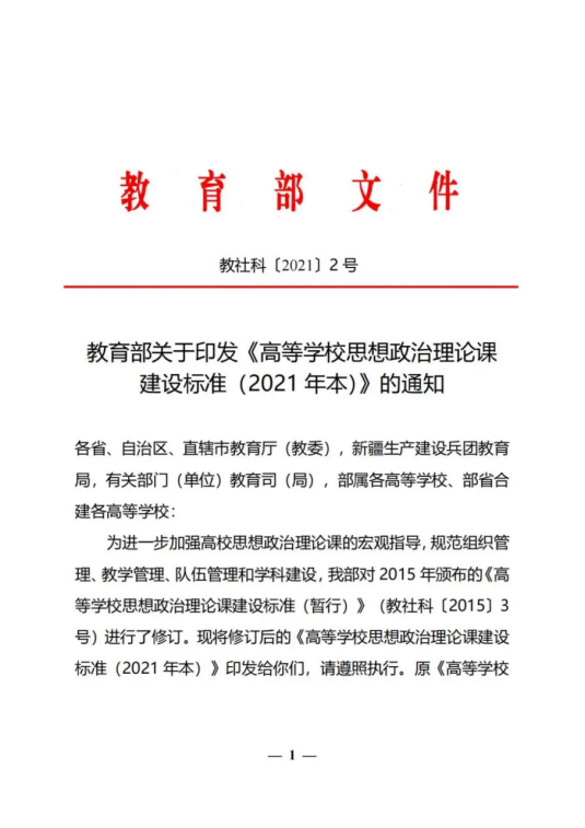 教育部关于印发《高等学校思想政治理论课建设标准(2021 年本)》的通知