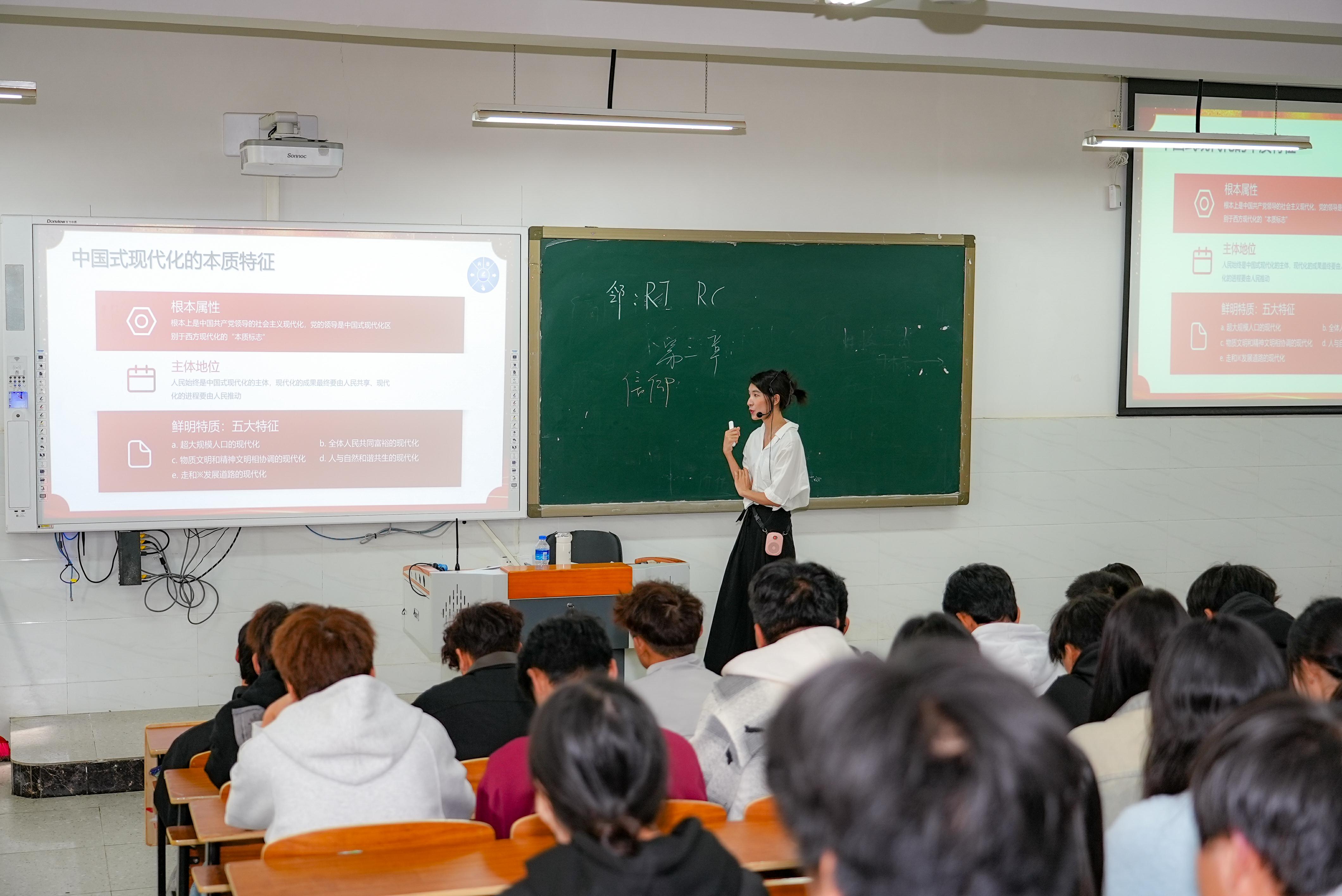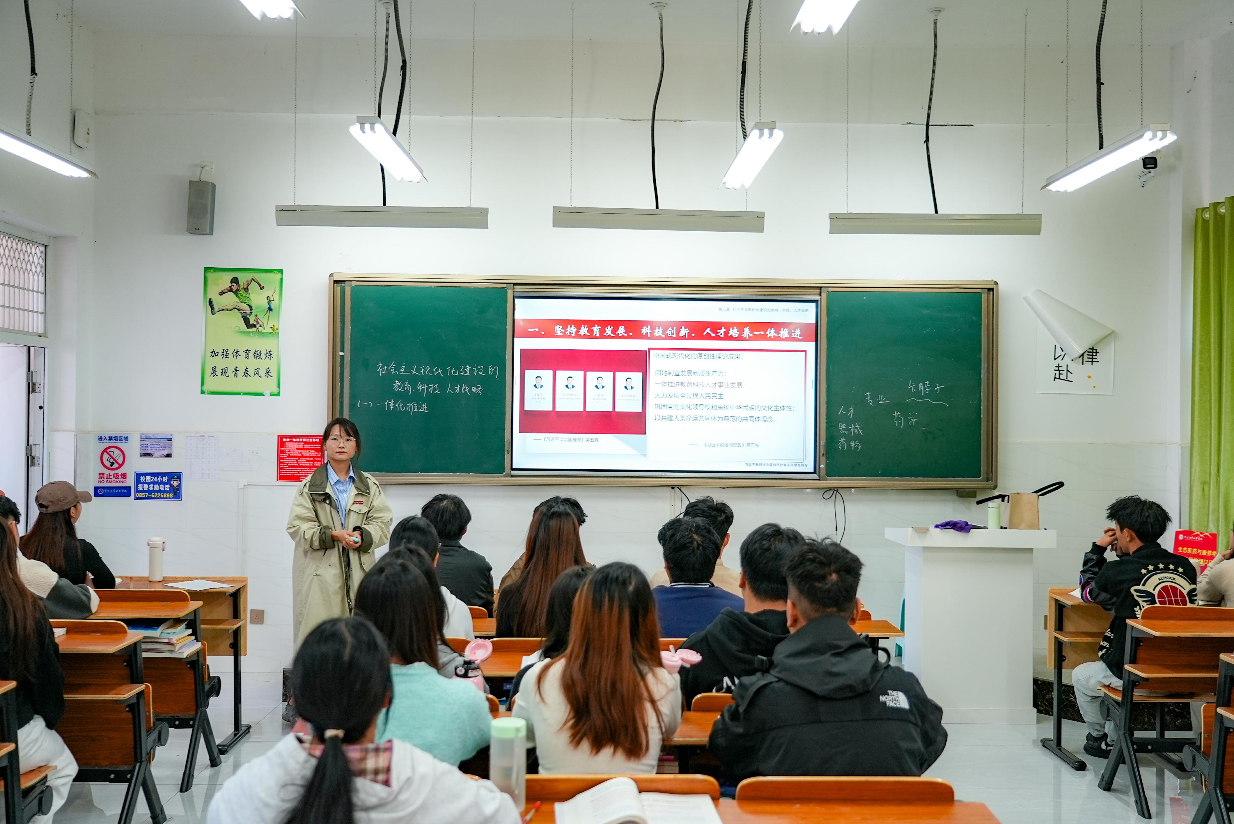 以“课堂教学”实现有机融入,赋能铸魂育人。课堂是理论传播的主阵地。学院全体思政课教师将学习成果主动、精准、全面地融入各门思政课程。在《习近平新时代中国特色社会主义思想概论》课中阐释思想体系的完备发展,在《思想道德与法治》课中凸显人民至上的价值立场,在《形势与政策》课中解读中国式现代化的宏伟蓝图。通过案例教学、专题研讨等多元化手段,把“基本原理”变成“生动道理”,有效引导青年学子深刻感悟思想伟力,筑牢信仰之基,争做新时代的奋斗者。