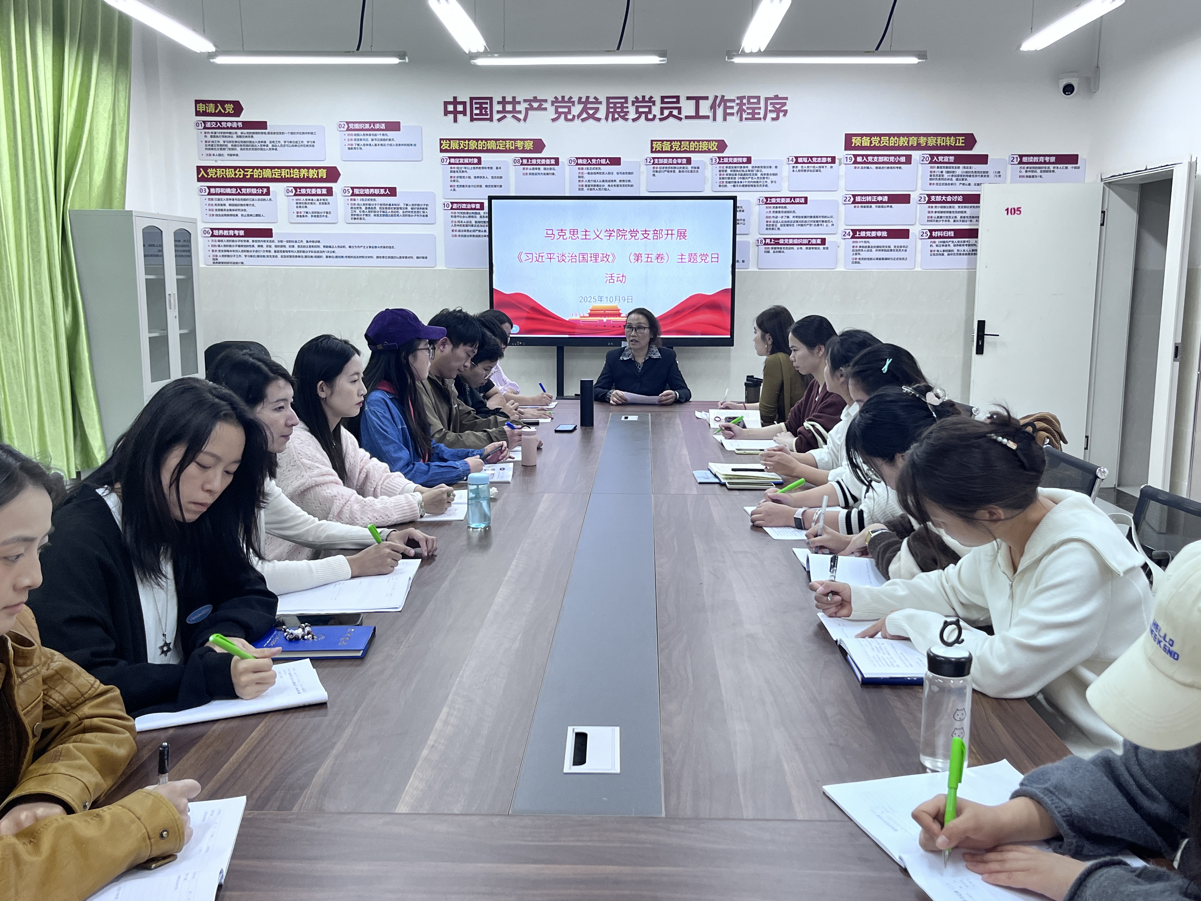 以“主题党日”筑牢理论根基,党员、教师先学一步。学院党支部将《习近平谈治国理政》(第五卷)作为核心学习内容,通过开展系列主题党日活动,组织全体党员、教师原原本本学、融会贯通悟。活动中,党员、教师们结合自身教学科研实际,深入开展交流研讨,深刻把握其思想精髓和核心要义,为将党的创新理论有效传递给学生打下了坚实的理论基础,实现了从“要我学”到“我要学”的积极转变。