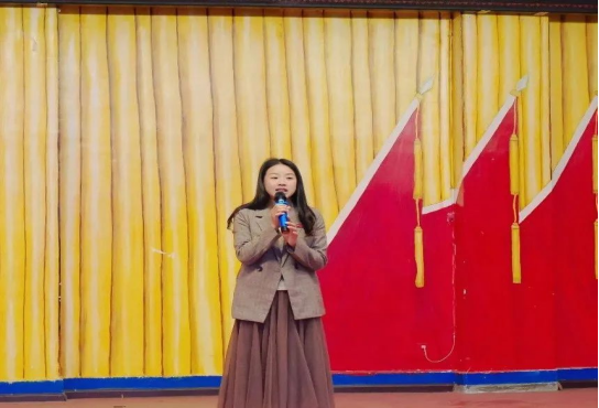 图为校团委老师朱静静讲话
