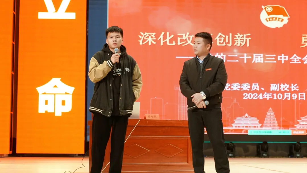 为深入学习贯彻党的二十届三中全会精神,引导学生全面理解和把握全会的重要意义和主要内容,进一步增强学生的政治认同、理论自信和行动自觉。10月9日,beat365官方网站党委委员、副校长杨金钱为学生们作了题为《深化改革创新,勇立时代潮头》的专题讲座。我校大一新生共计1000余人参加。